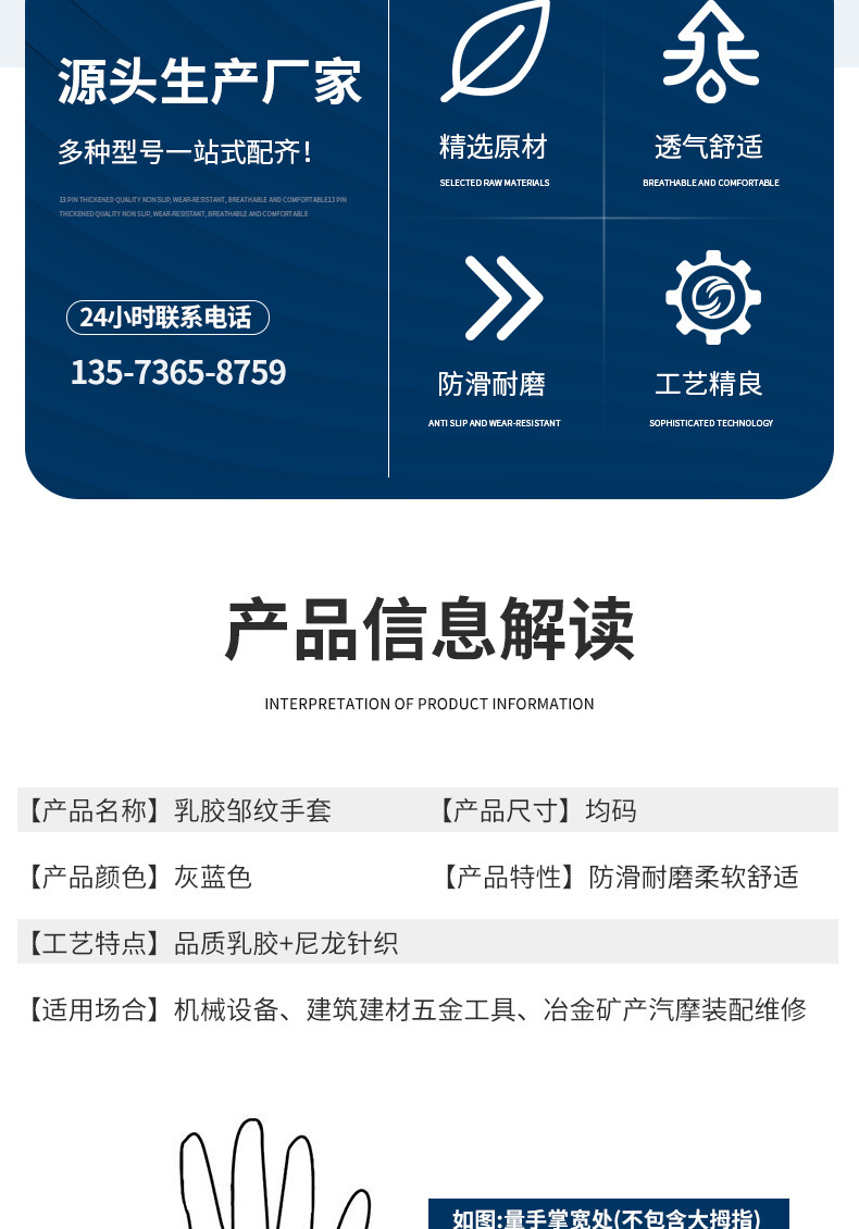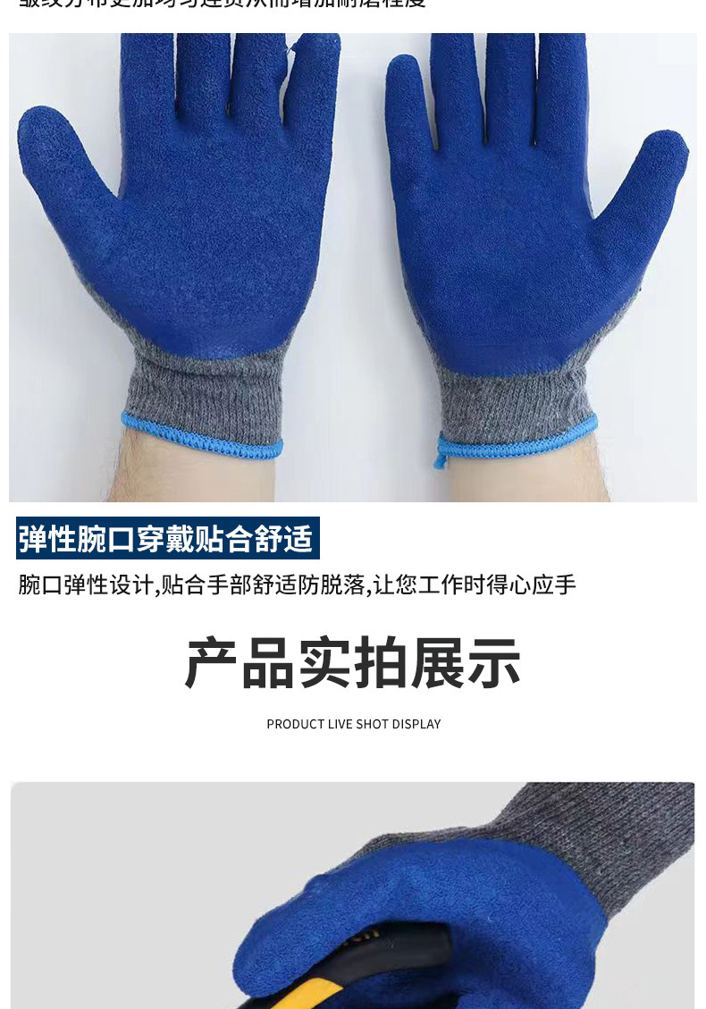 10 바늘 회색 원사 블루 라텍스 주름 장갑 파란색 고무 주름 장갑 수출 공장 직접 탄광 장갑스토어 가기