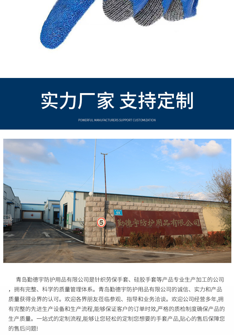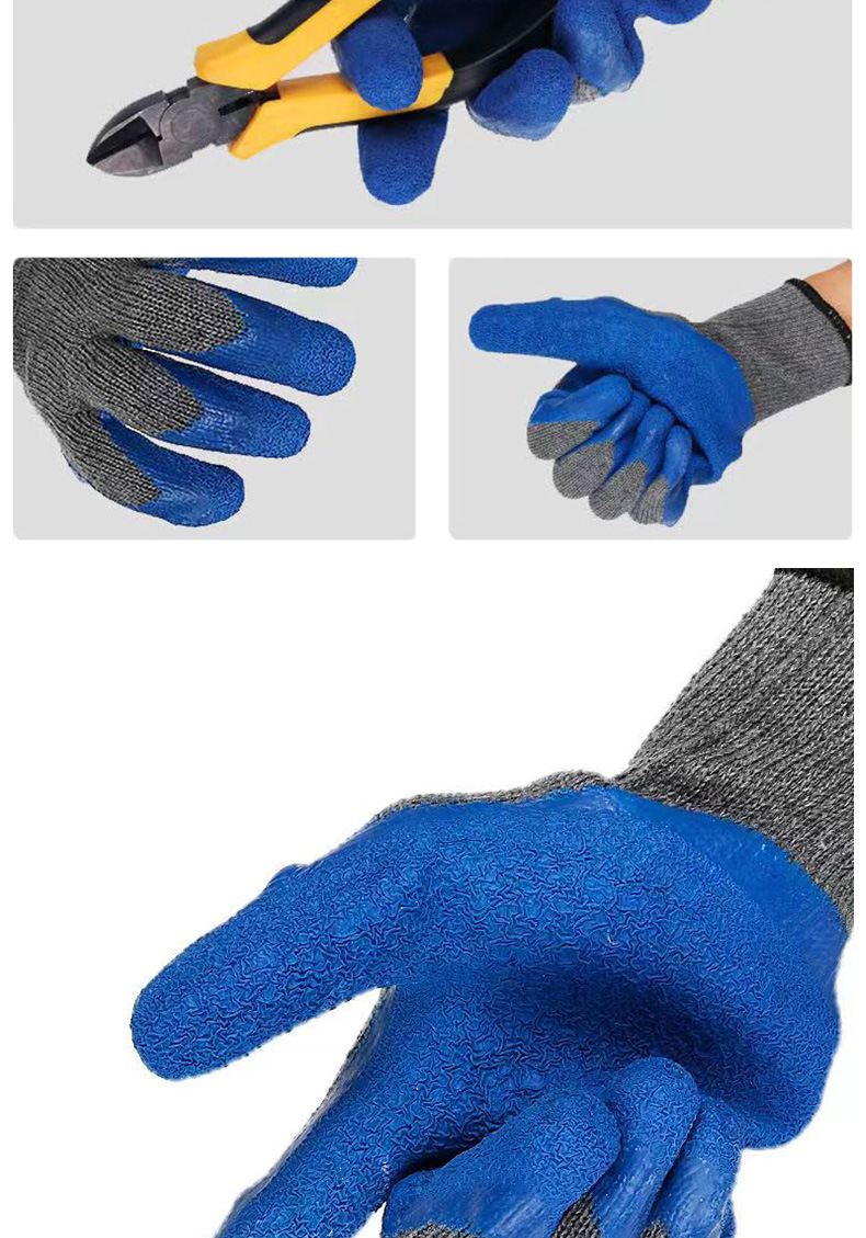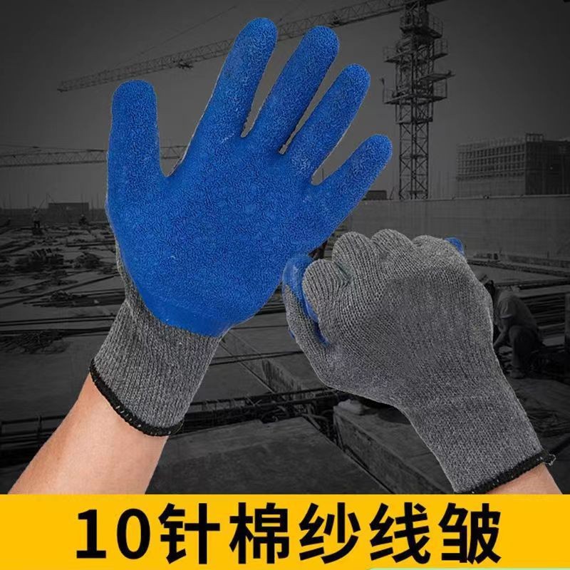 10 바늘 회색 원사 블루 라텍스 주름 장갑 파란색 고무 주름 장갑 수출 공장 직접 탄광 장갑