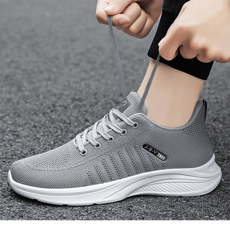 남성용 봄 신상품 플라이 니트 메쉬 통기성 단화 공장 직판 부드러운 밑창 편안한 캐주얼 신발 남성 운동화