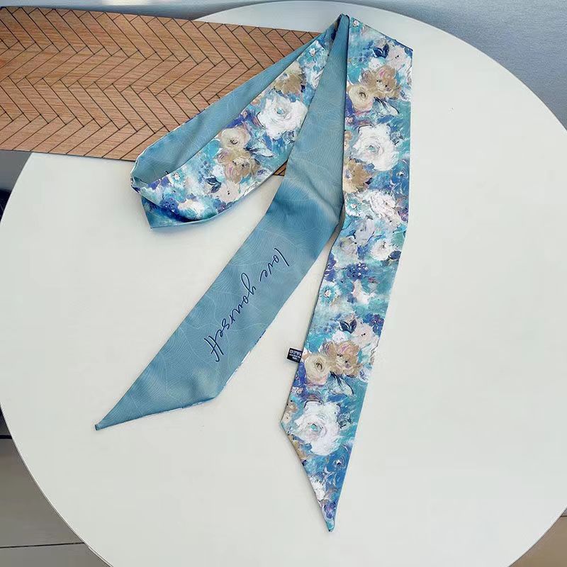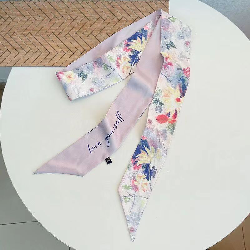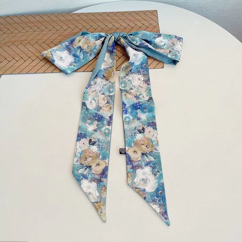 긴 작은 실크 스카프 여자의 긴 복고풍 프랑스 스타일 넥타이 가방 다기능 봄과 가을 리본 모든 일치 장식 양면 헤어 밴드스토어 가기