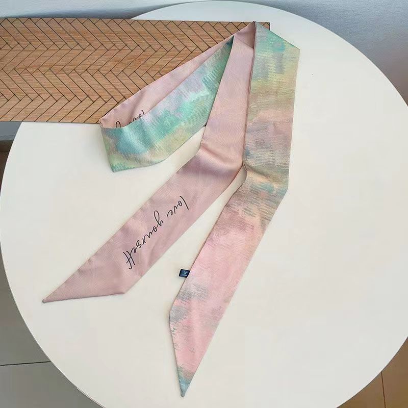 긴 작은 실크 스카프 여자의 긴 복고풍 프랑스 스타일 넥타이 가방 다기능 봄과 가을 리본 모든 일치 장식 양면 헤어 밴드