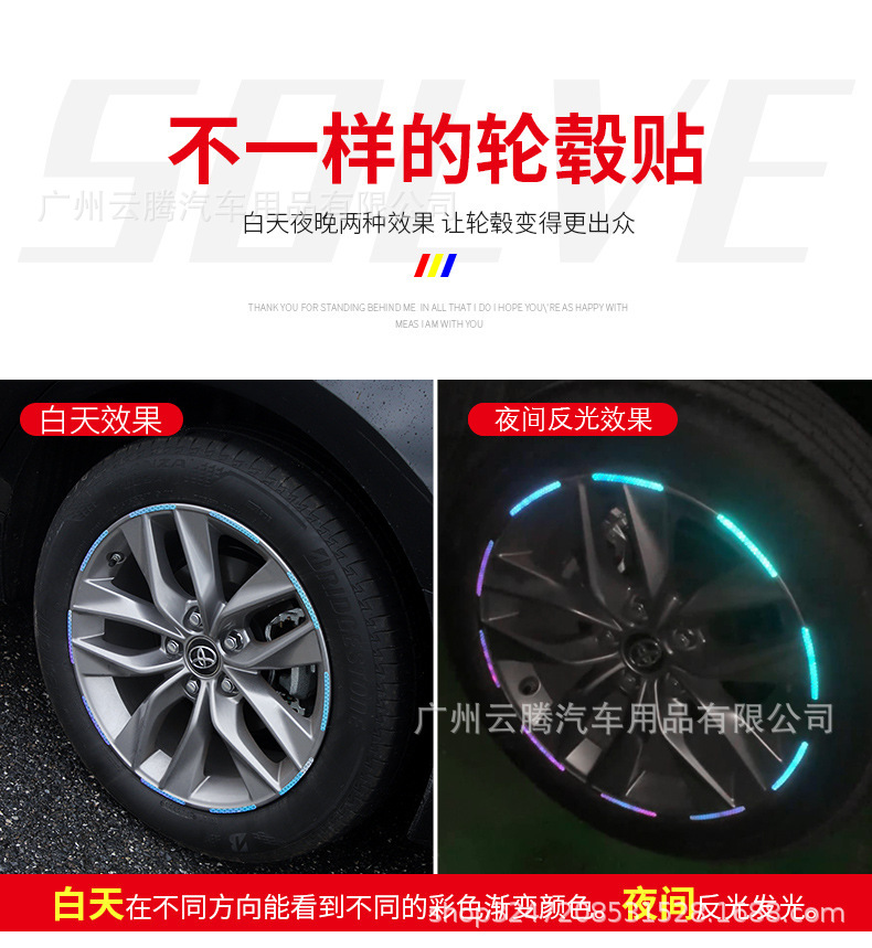 새로운 차 다채로운 바퀴 반사 스티커 개인화 된 창조적 인 오토바이 전기 자동차 빛나는 타이어 경고 장식 스티커스토어 가기