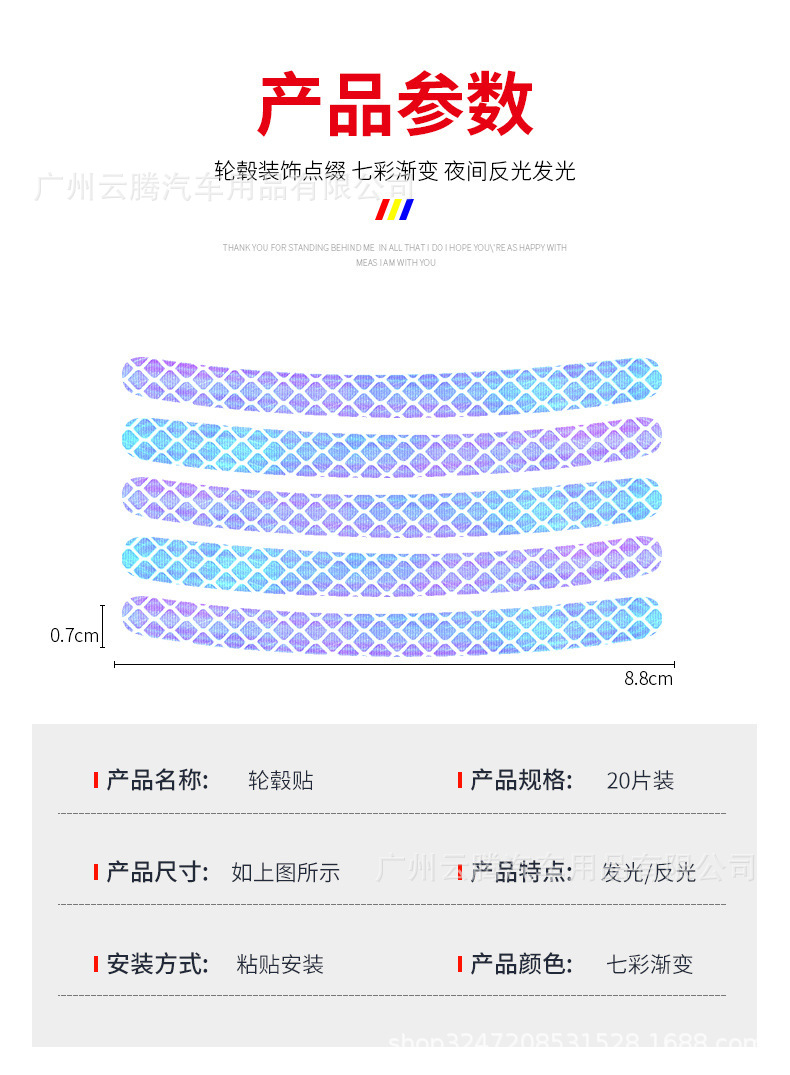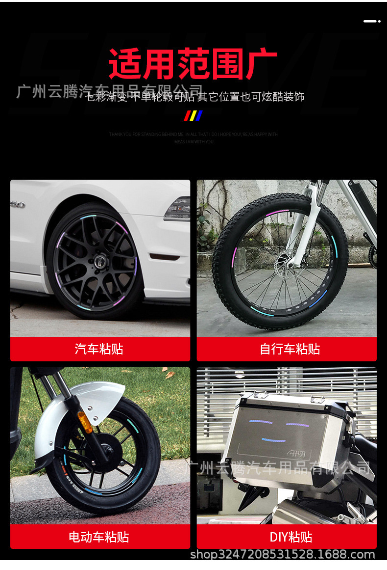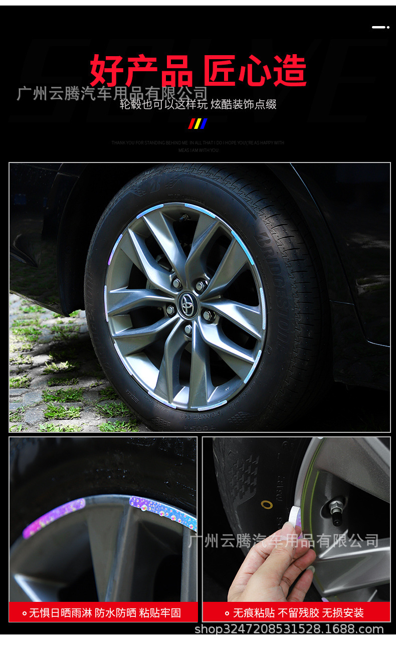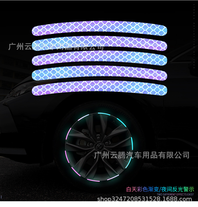 새로운 차 다채로운 바퀴 반사 스티커 개인화 된 창조적 인 오토바이 전기 자동차 빛나는 타이어 경고 장식 스티커