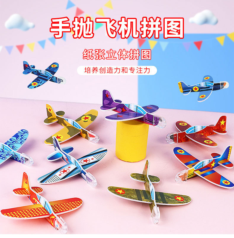유치원 소년 작은 비행기 장난감 어린이 생일 선물 만화 손 던지기 미니 DIY 퍼즐 항공 모델