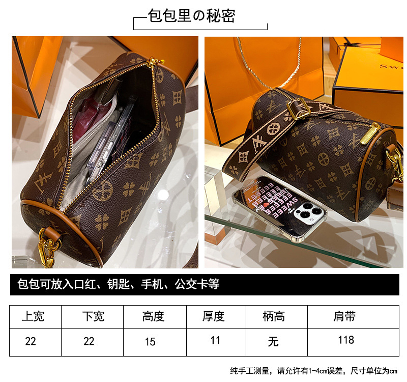 패션 여성용 가방 크로스 바디 백 여성용 2023 새로운 크로스 보더 유럽과 미국 스타일 여성용 숄더백 와이드 숄더 스트랩 원통형 백팩스토어 가기