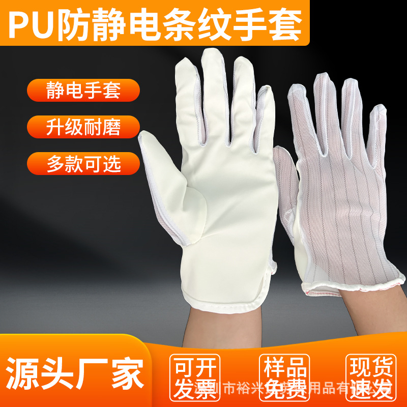 작업장용 무진 방진 정전기 방지 장갑 PU 스트라이프 장갑 다섯 손가락 정전기 방지 작업 장갑 도매