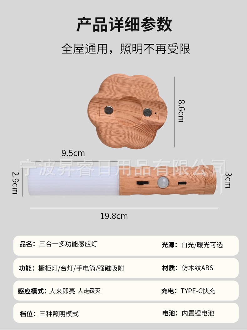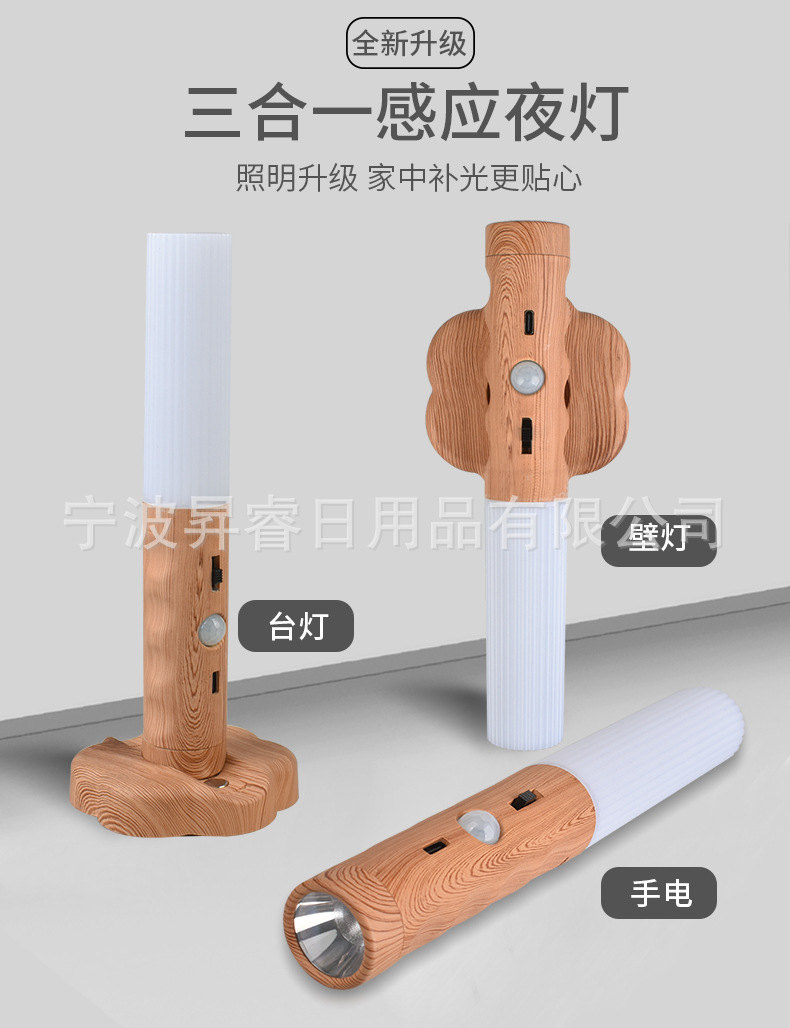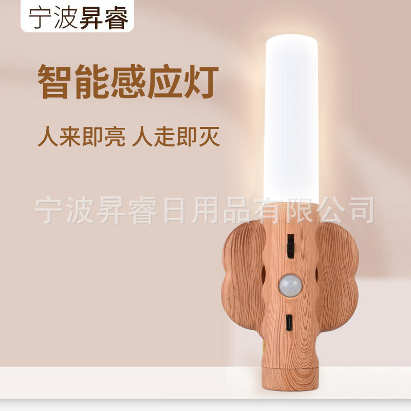 스마트 인체 유도 램프 무선 충전 야간 조명 나무 캐비닛 램프 입구 램프 침대 옆 램프
