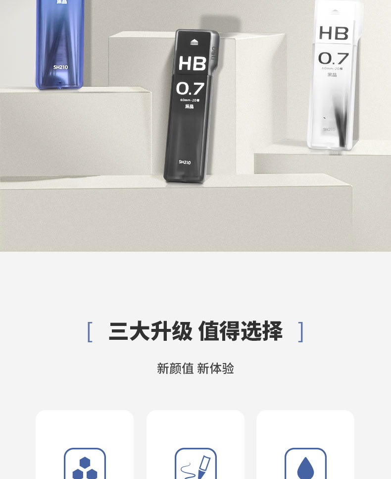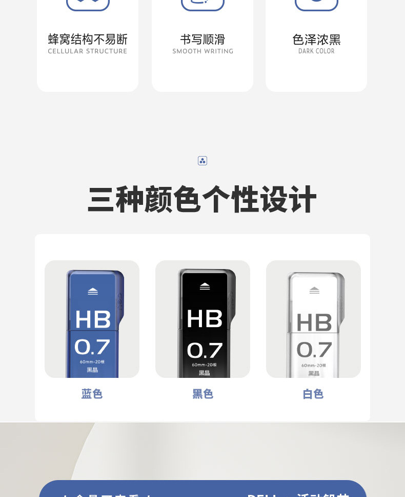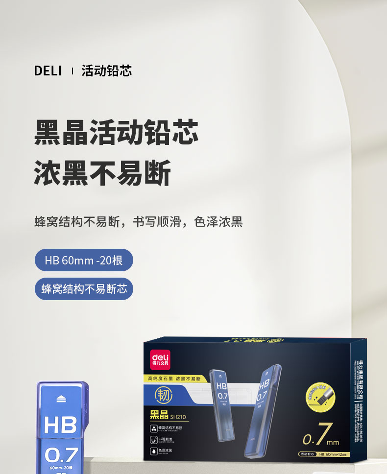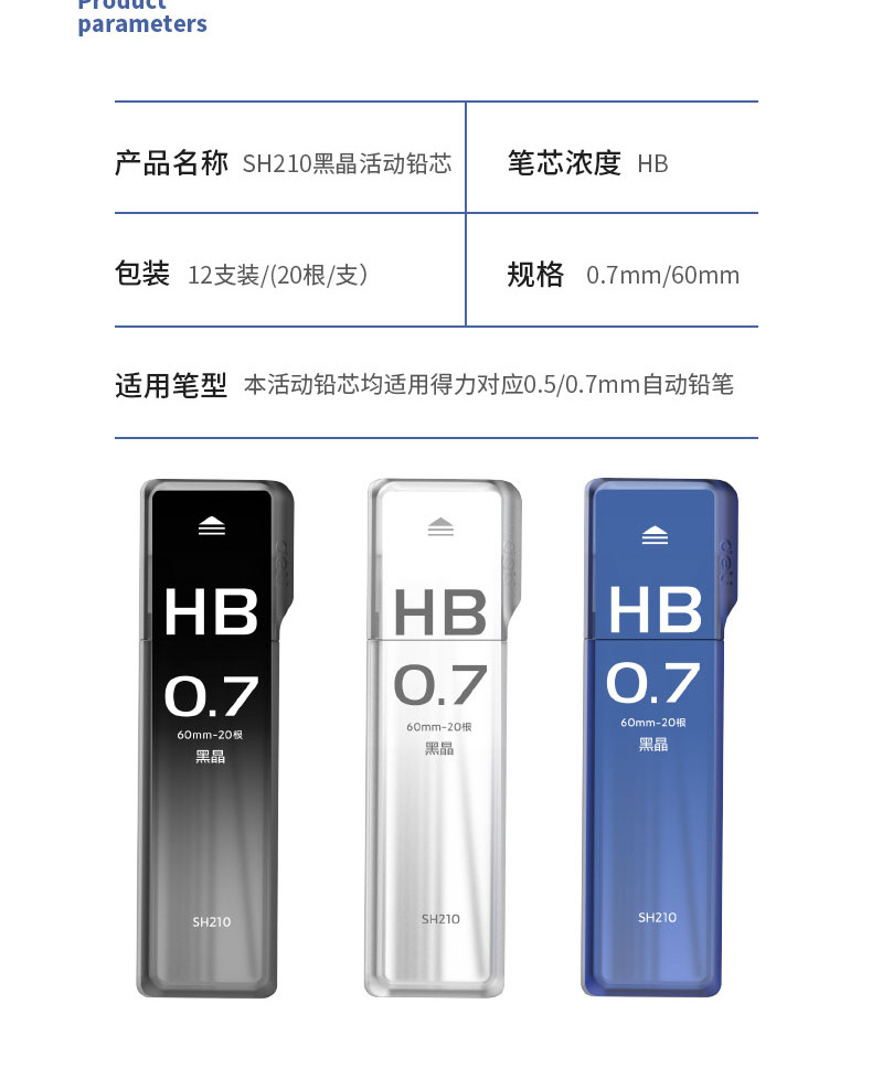 델리 SH209/SH210 블랙 크리스탈 하이 퀄리티 활동 리드 학생 HB0.5/0.7-60mm 샤프 펜슬