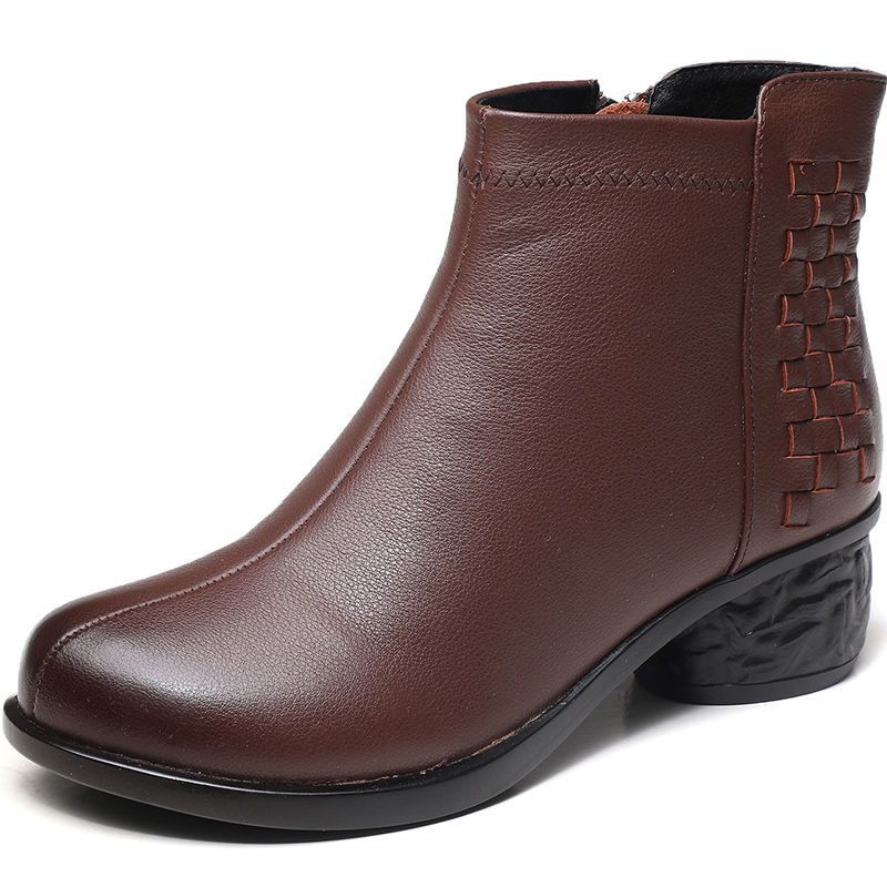 정품 가죽 기모 여성용 면 부츠 겨울 새로운 따뜻한 어머니의 면 부츠 플랫 솔 중년 및 노인 여성의 미끄럼 방지 따뜻한 면 신발스토어 가기