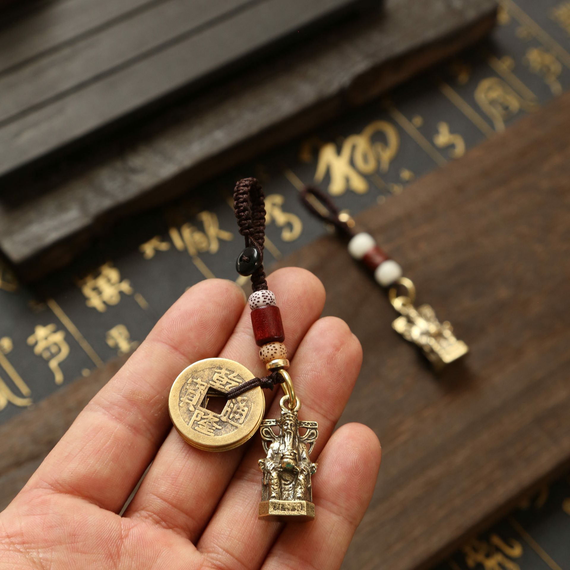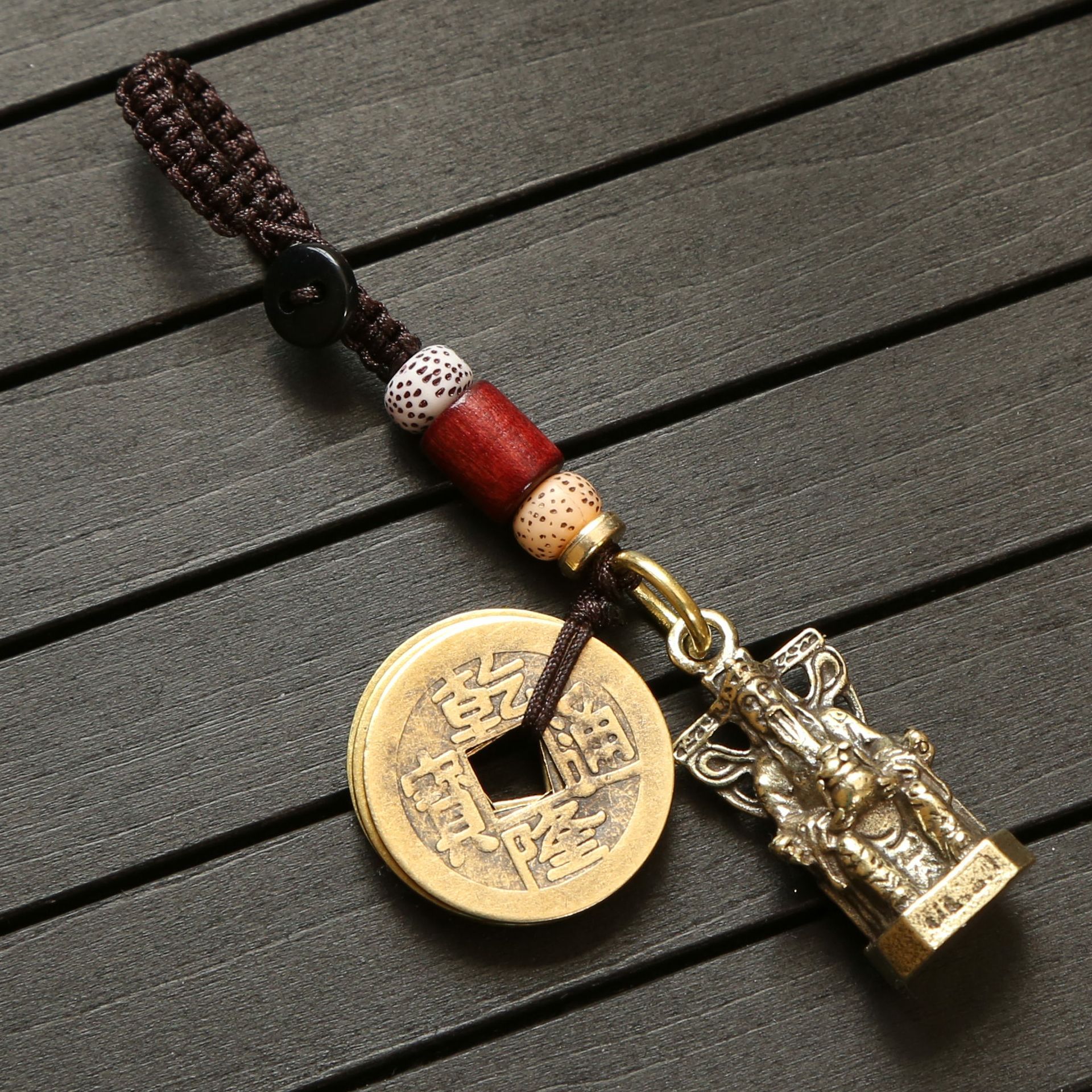 황동 부의 신 다섯 황제 돈 펜던트 자동차 열쇠 남자와 여자의 가방 펜던트 열쇠 고리 도매