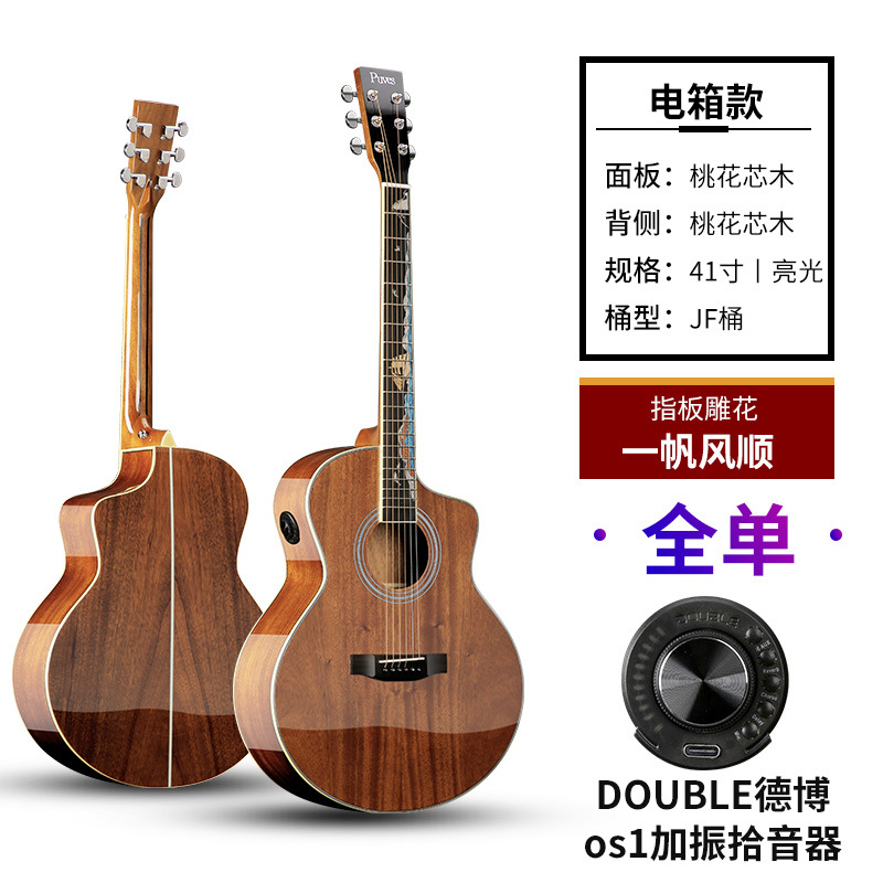 풀 싱글 기타 41 인치 40 인치 재고 도매 가문비 나무 복숭아 꽃 코어 풀 베니어 포크 핑거 보드 조각 베고니아 범선스토어 가기
