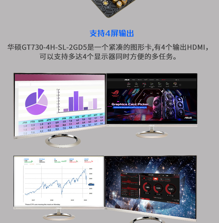 GT730 4H SL 2G D5 멀티스크린 그래픽 카드에 적합, 주식 거래, 프로젝션, 4화면 HDMI 입력 지원스토어 가기