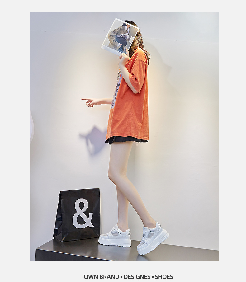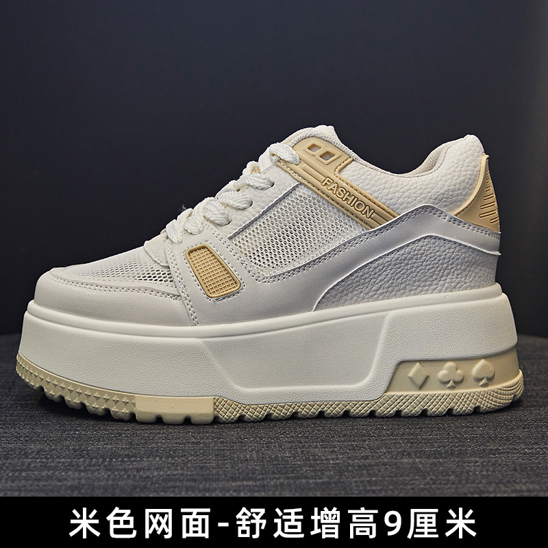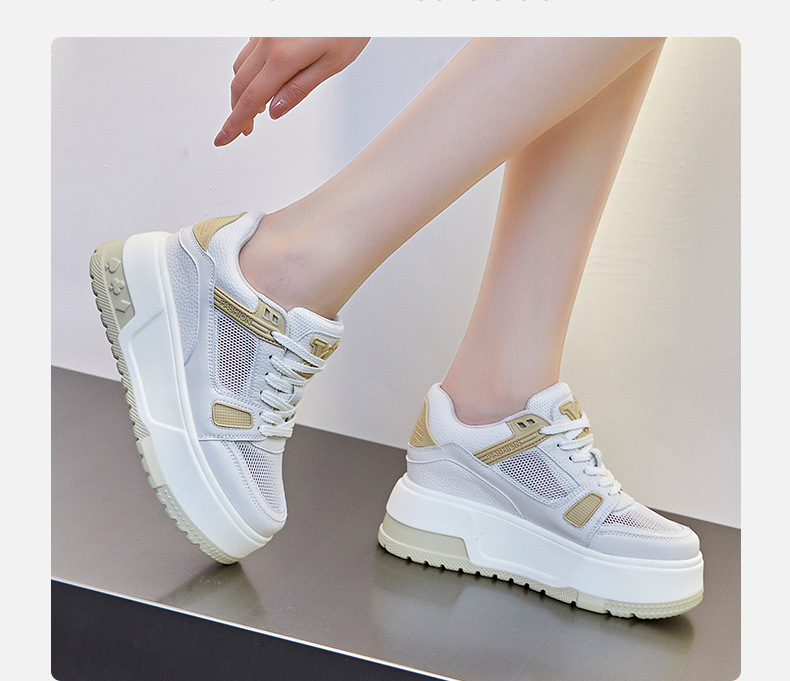 두꺼운 밑창 여성 신발 키높이 신발 여성용 봄 신상 캐주얼 다용도 플랫폼 화이트 신발 메쉬 신발 2025 발이 피곤하지 않음