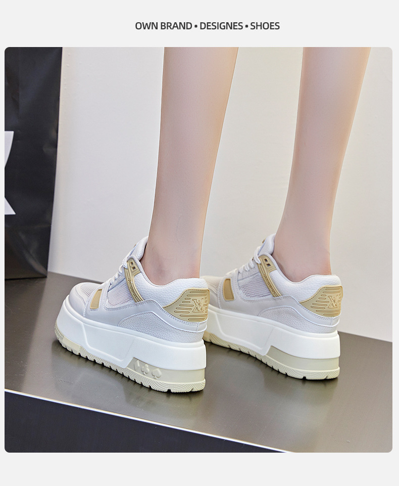 두꺼운 밑창 여성 신발 키높이 신발 여성용 봄 신상 캐주얼 다용도 플랫폼 화이트 신발 메쉬 신발 2025 발이 피곤하지 않음스토어 가기