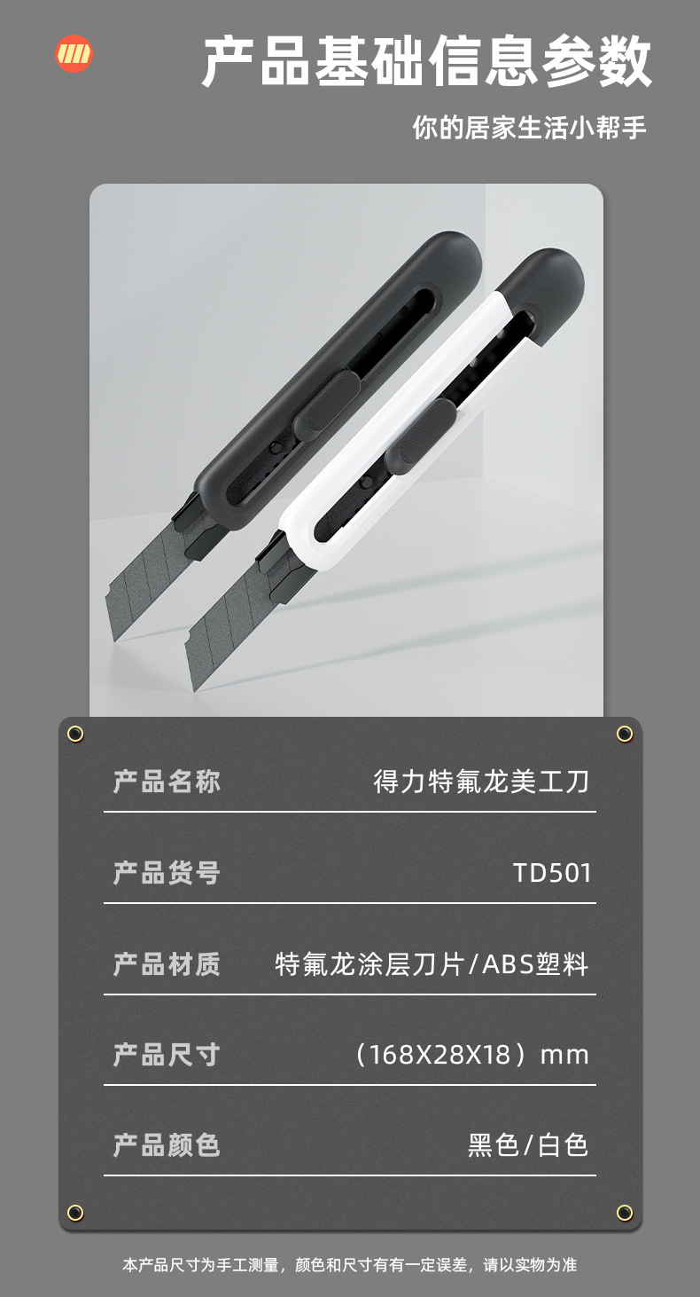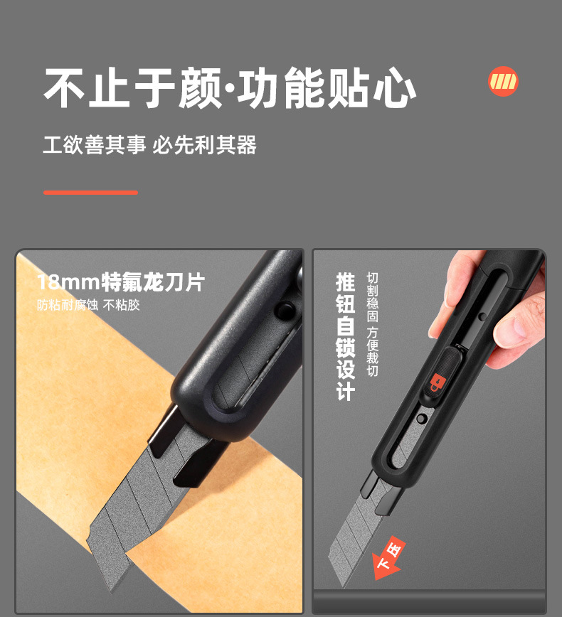 델리 대형 테프론 접착 방지 아트 나이프 스테인레스 스틸 종이 절단 칼 사무실 용 수제 특수 익스프레스 나이프