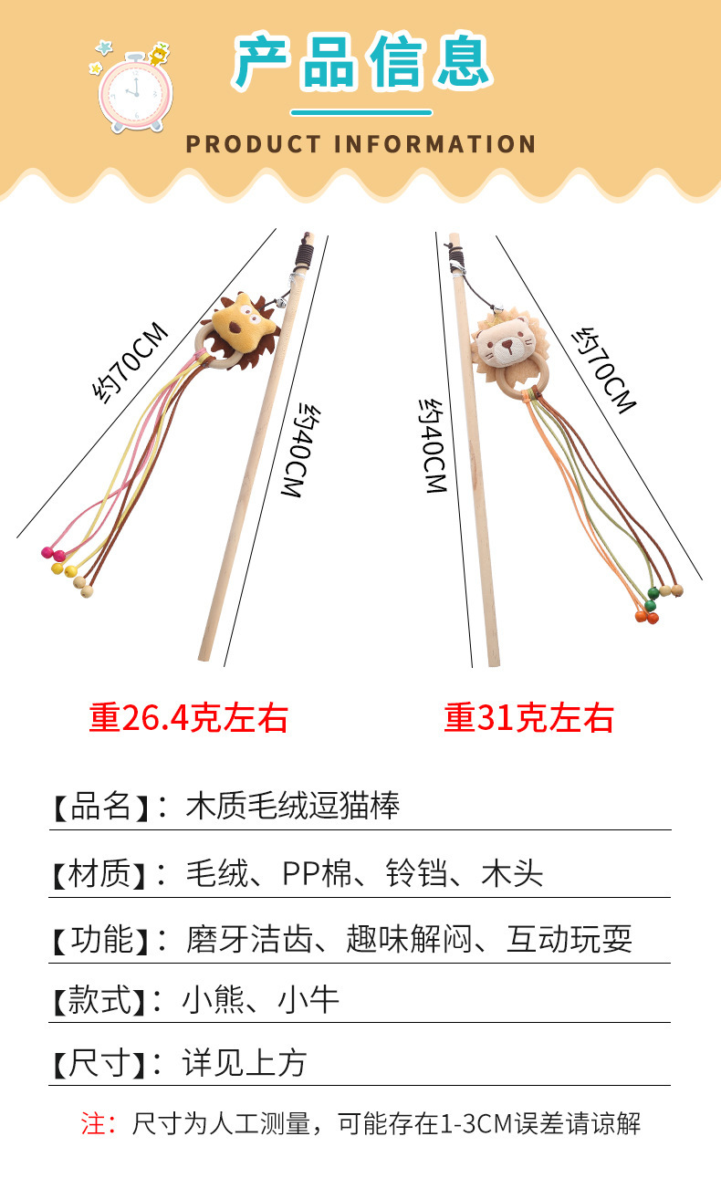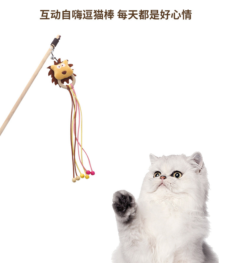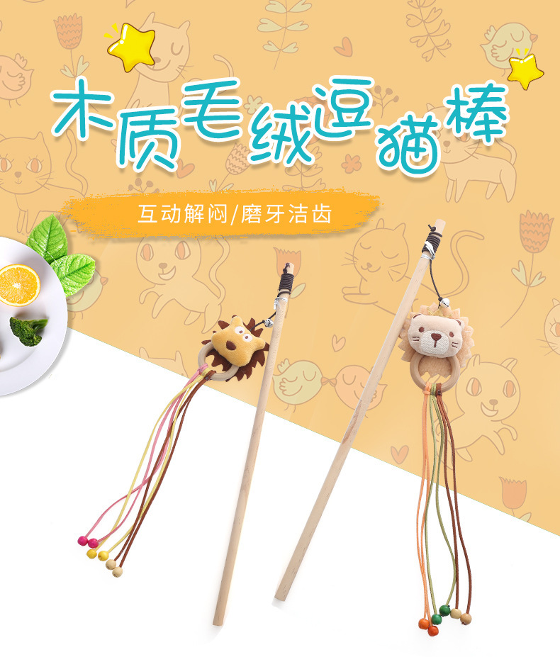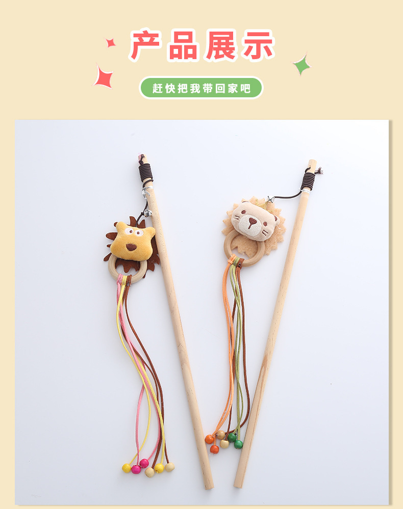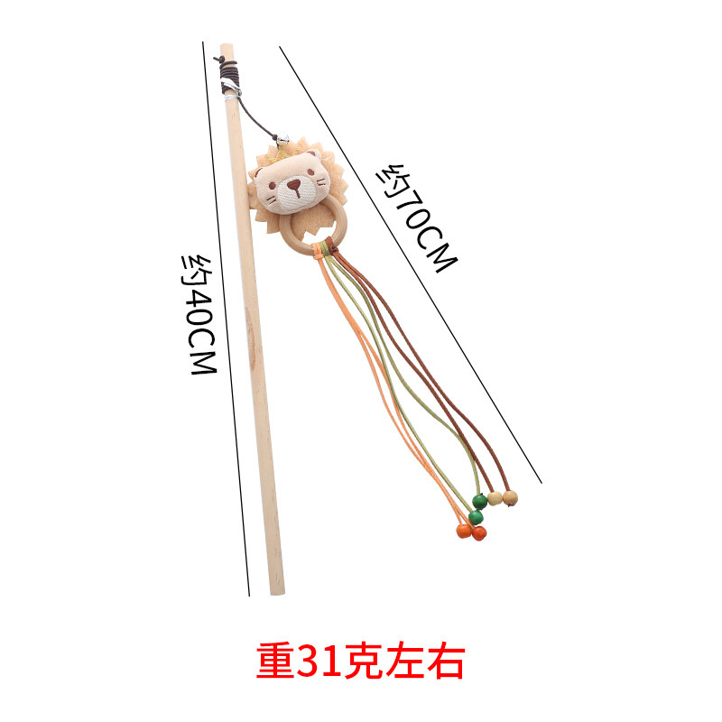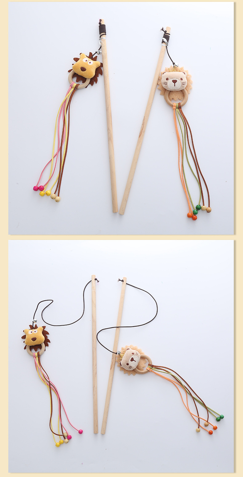 印第安风原木杆小熊狮子逗猫棒宠物用品猫玩具 现货出口厂家批发