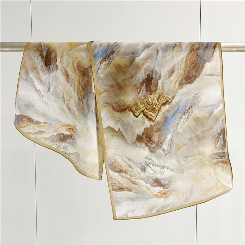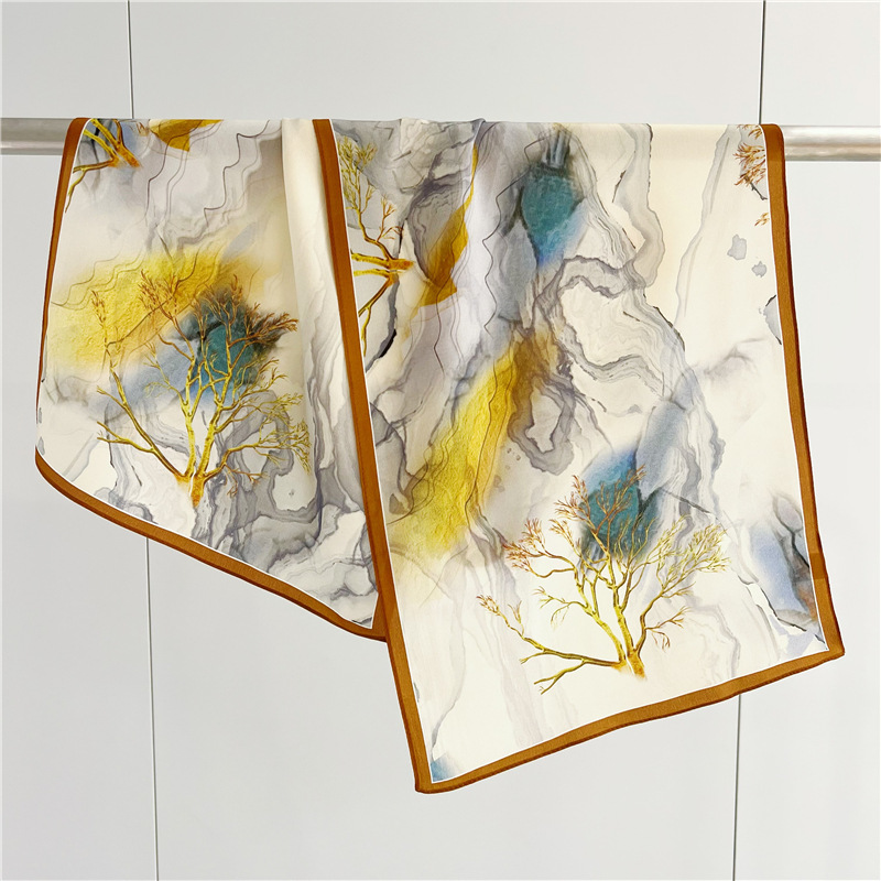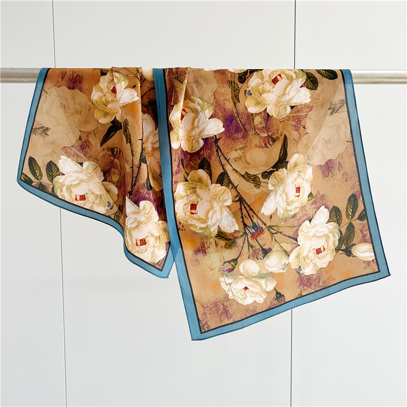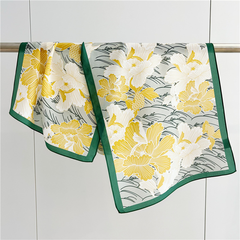 항저우 실크 크레이프 드 차인 실크! 뽕나무 실크 스카프 여성용 봄과 여름 한국식 모든 매치 장식 리본 작은 긴 스카프