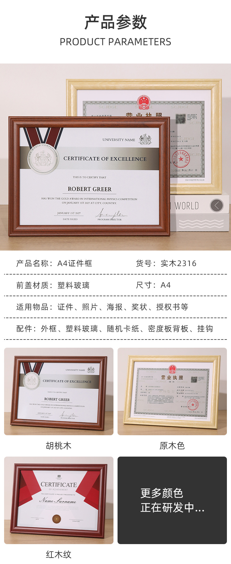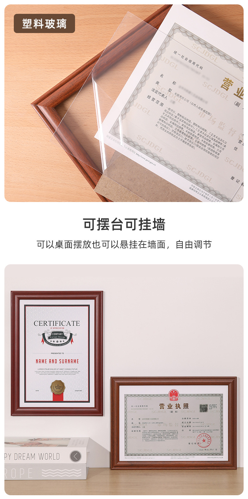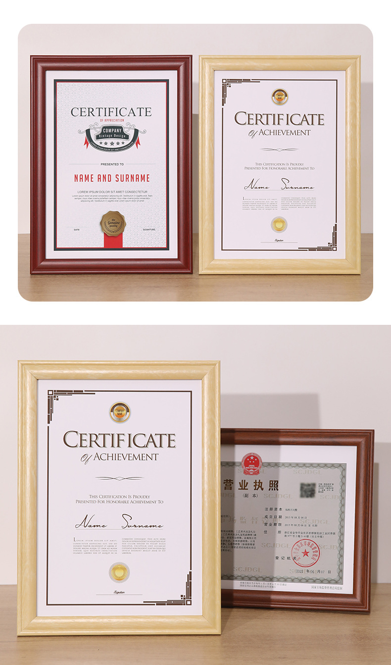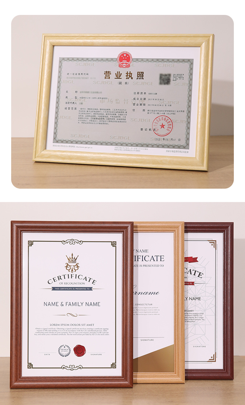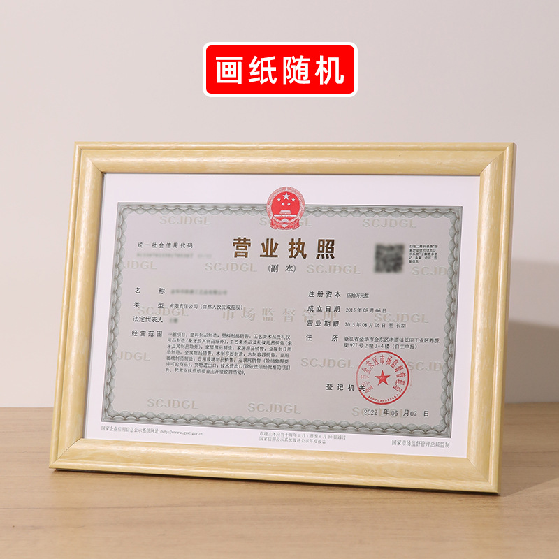 단단한 나무 비즈니스 라이센스 인증서 사진 프레임 A4 프레임 세무 등록증 프레임 A3 인증서 인증서 외부 프레임 사진 프레임스토어 가기