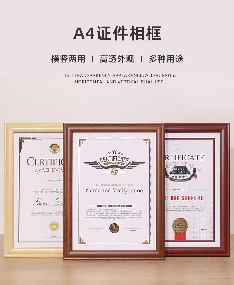 단단한 나무 비즈니스 라이센스 인증서 사진 프레임 A4 프레임 세무 등록증 프레임 A3 인증서 인증서 외부 프레임 사진 프레임