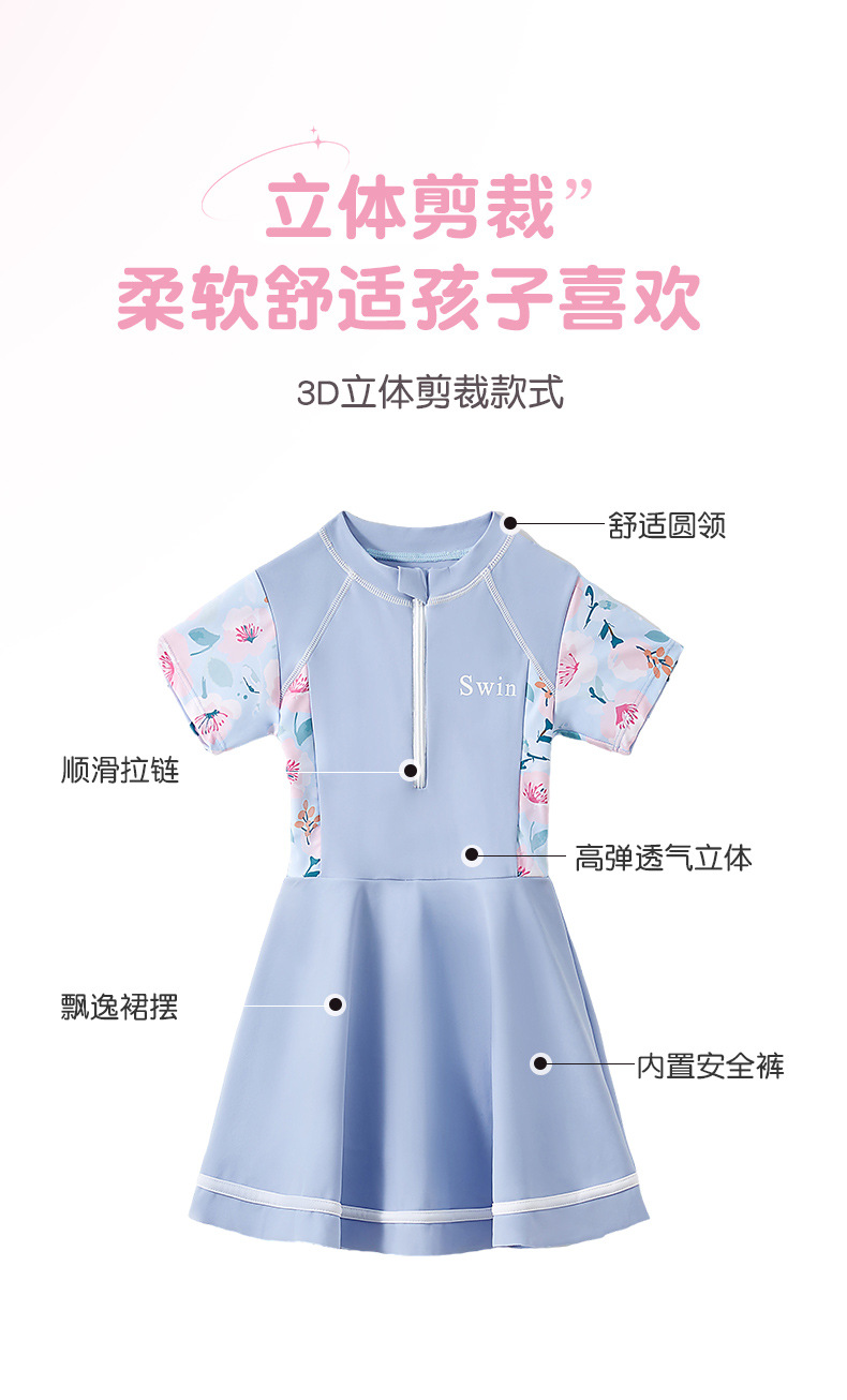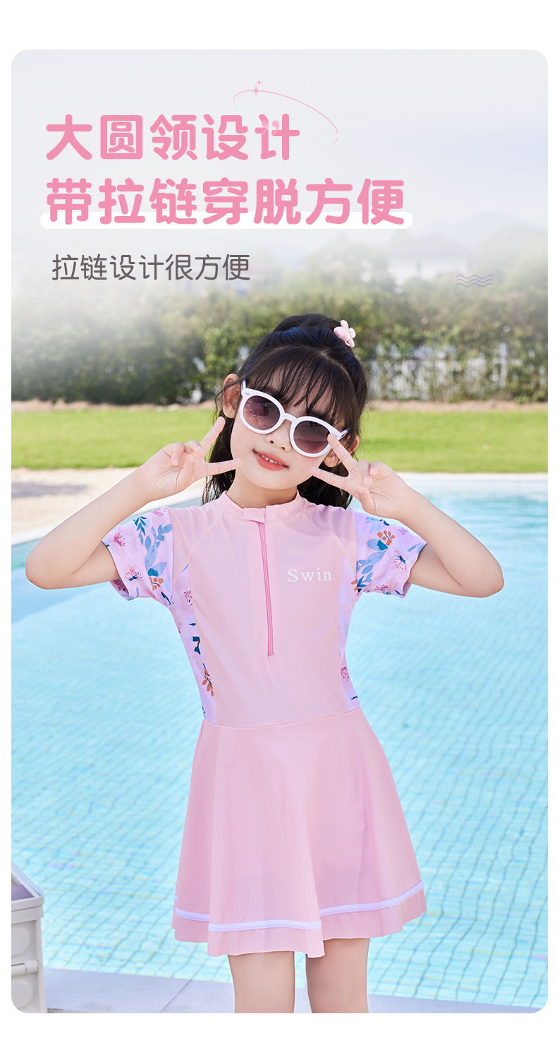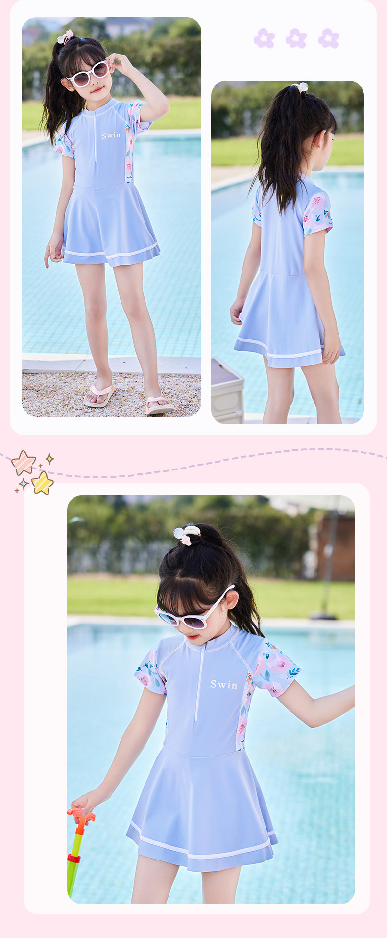 아동용 수영복 7-12세, 중대형 아동 수영복, 학생 트레이닝복, 신축성 있는 노출 방지 원피스 수영복, 꽃무늬 스커트스토어 가기