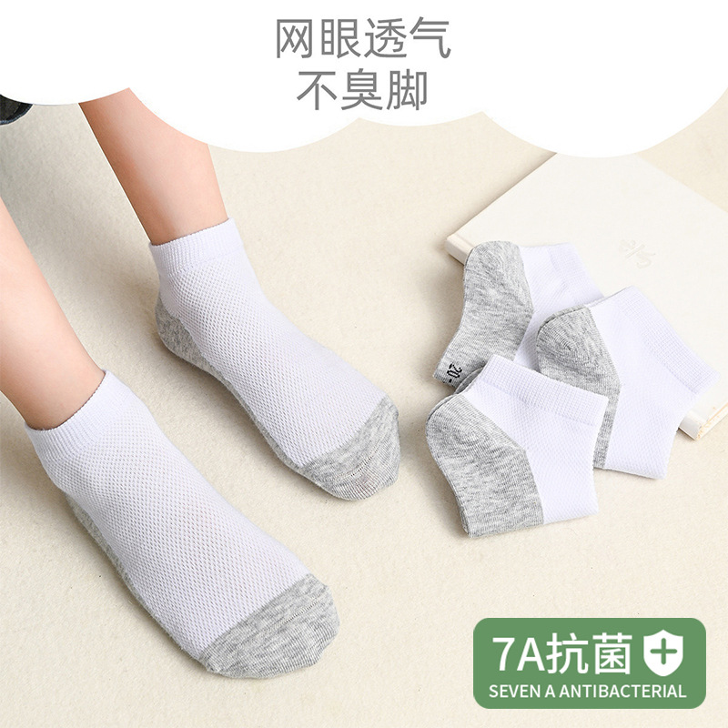 Xuweimeisiyuan 여름 항균 어린이 흰색 학생 양말 얇은면 양말 스포츠 양말 메쉬 통기성 뼈없는스토어 가기