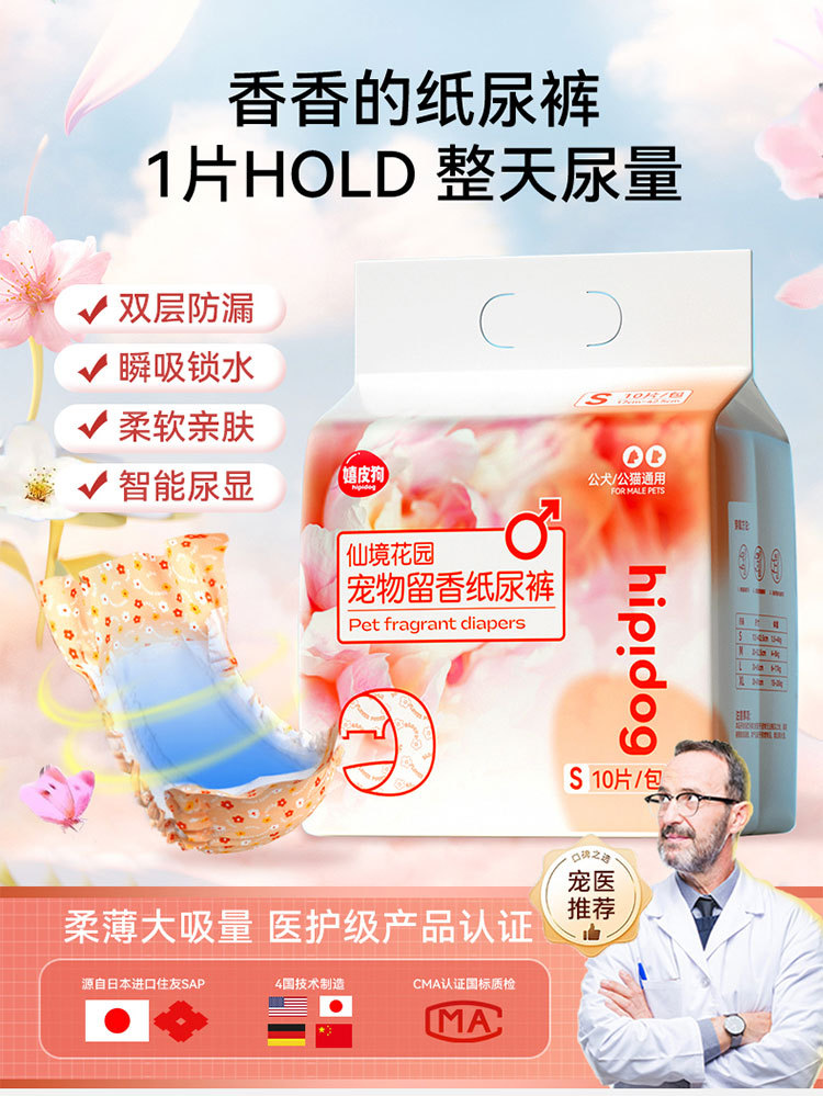 원더랜드 가든 애완 동물 기저귀 흡수성 물 잠금 통기성 상쾌한 안티 카오스 강아지 기저귀