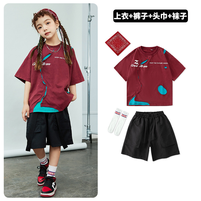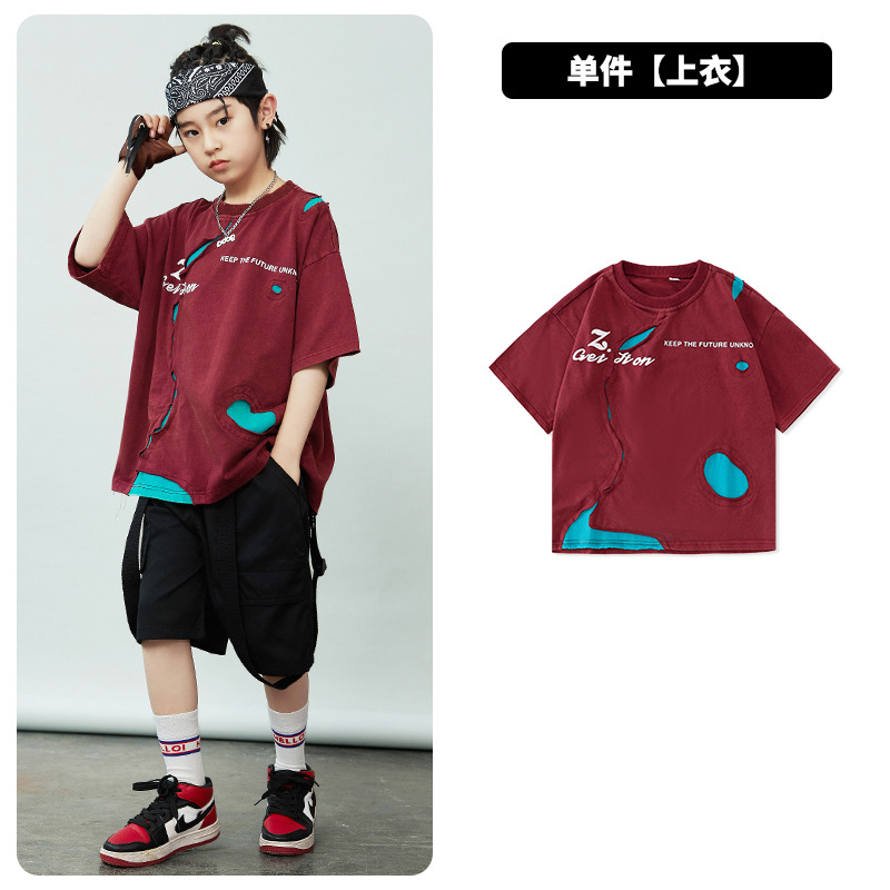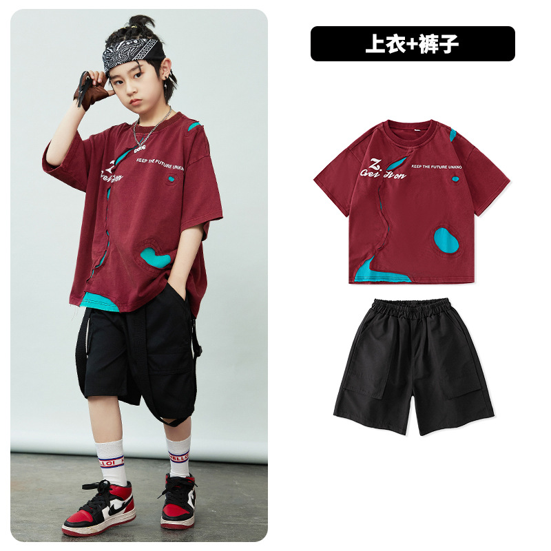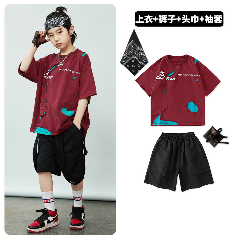 힙합 어린이 패션 힙합 찢어진 공연 옷 소년 소녀 패션 세트 힙합 멋진 잘 생긴 아이들의 공연 옷