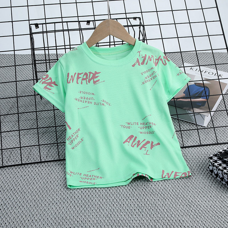 소년 티셔츠 반팔 2025 여름 얇은 어린이 속건성 얼음 실크 탑 아기 한국 스타일 아기 소년 반팔