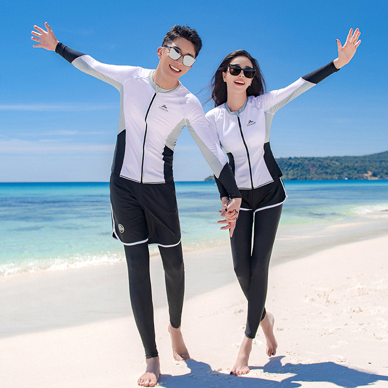 한국 다이빙 세트 여성 커플 긴 소매 해파리 수영 세트 분할 선 스크린 바지 스노클링 세트 슬림