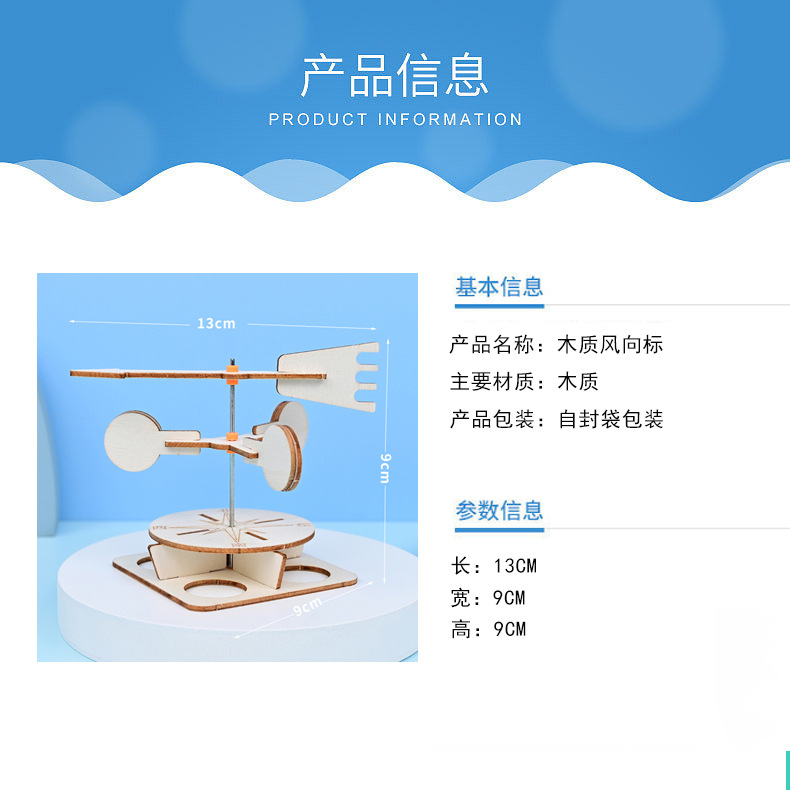 목제 풍향계 기술 만들기 작은 발명품 창작 DIY 손수 만들기 줄기 교실 과학 소형 실험 재료 패키지