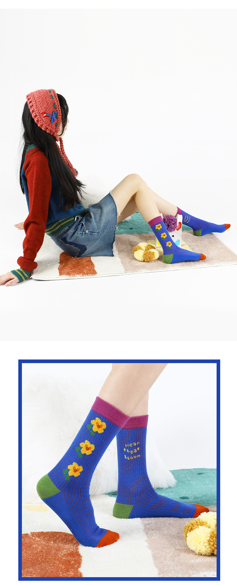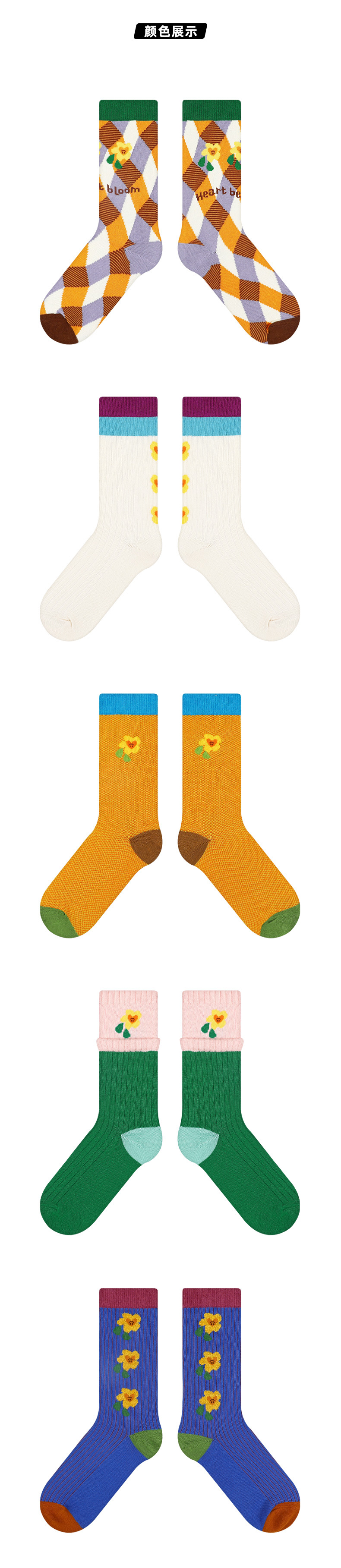 DAMAHOOV 오리지널 플라워 양말 여성용 봄과 여름 새로운 독특한 면 양말 한국어 스타일 미드 튜브 양말스토어 가기