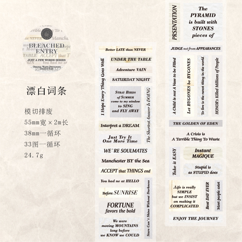 모 모 폐기물 배출 접착 테이프 종이 단어 시리즈 라벨 콜라주 핸드북 DIY 장식 재료 스티커 6
