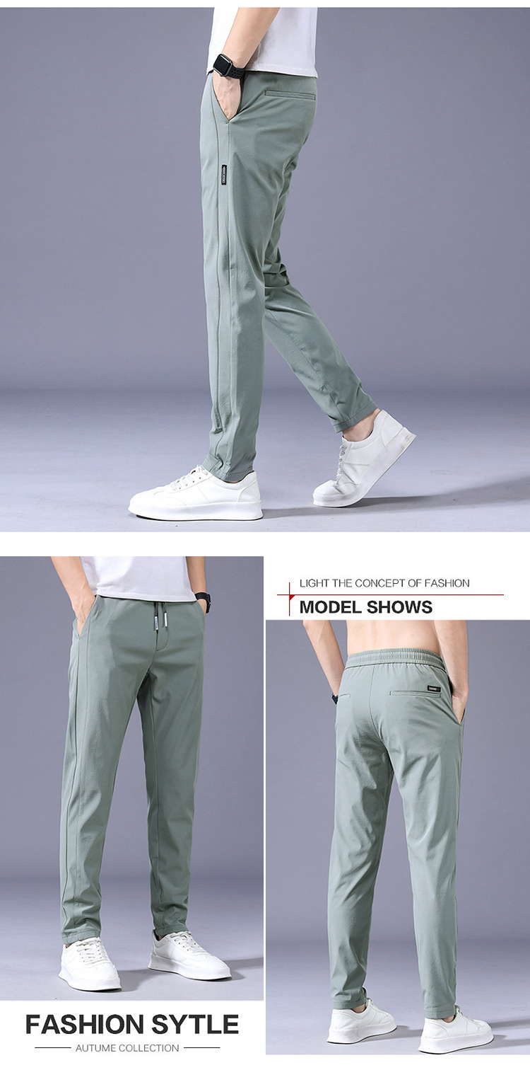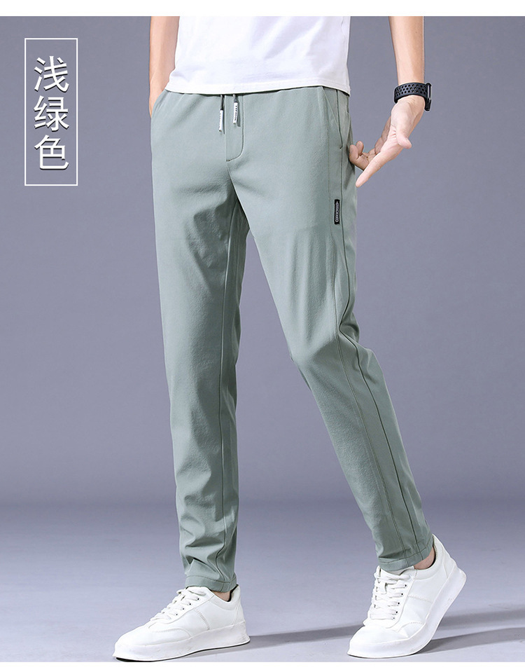 아이스 실크 바지 남성용 여름 얇은 트렌디 브랜드 느슨한 스트레이트 스포츠 바지 여름 비즈니스 속건 남성 캐주얼 바지