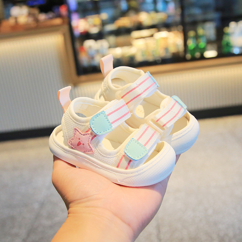 아기 샌들 여름 메쉬 통기성 부드러운 단독 미끄럼 방지 유아 신발 1-3 세 소년 캐주얼 신발 여성용 비치 신발