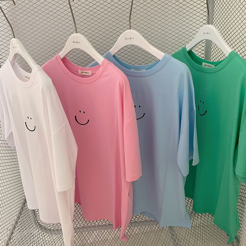 • 더블 짧은 # 웃는 얼굴 녹색 바지 + 흰색 T