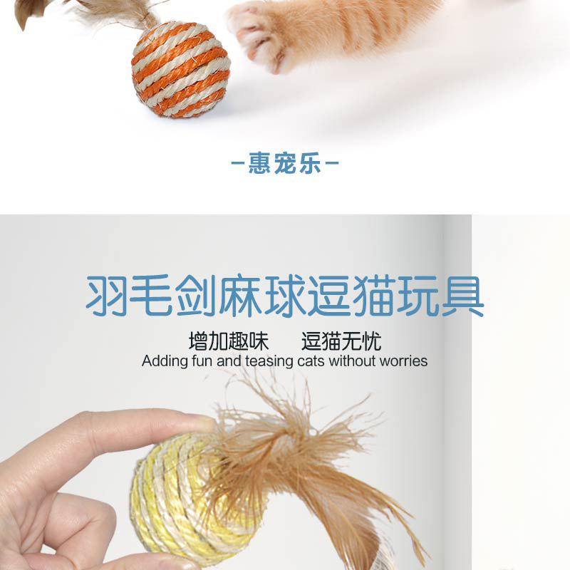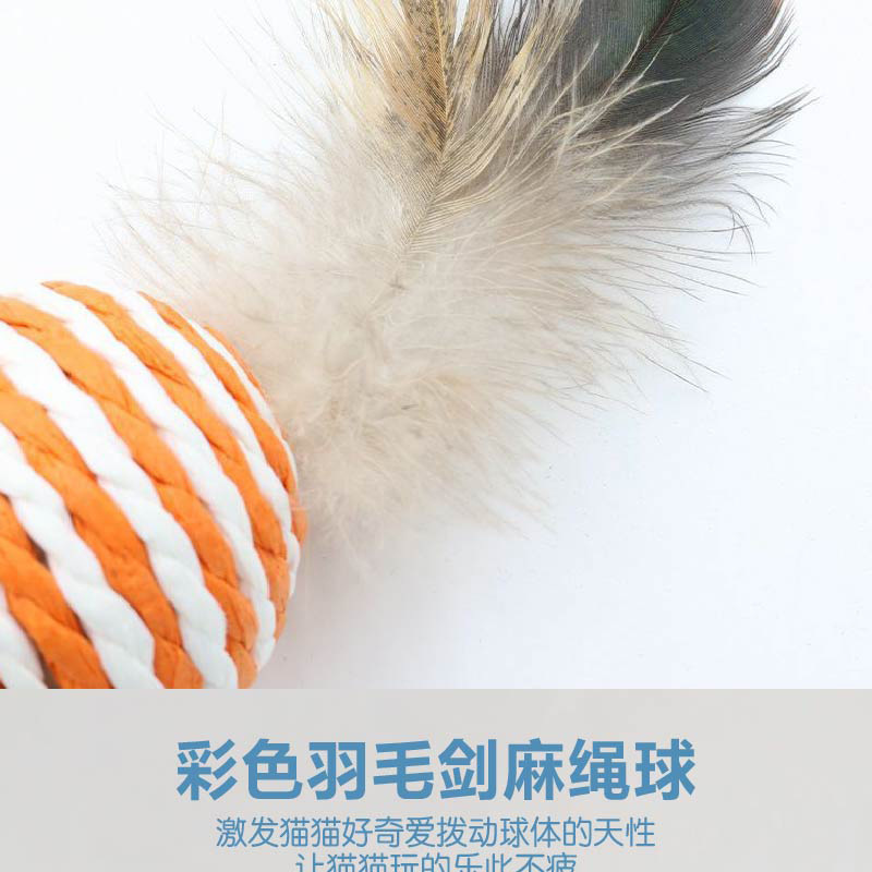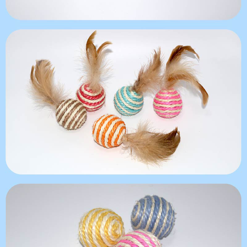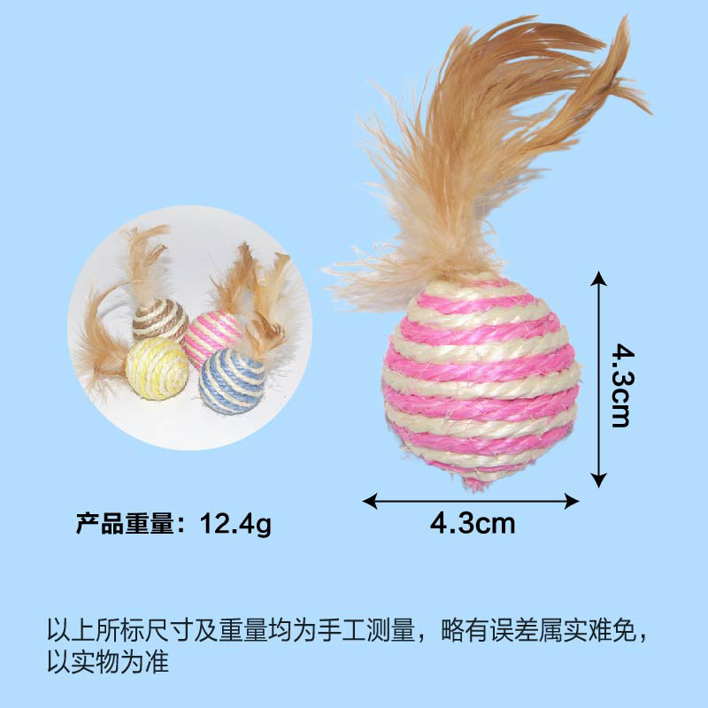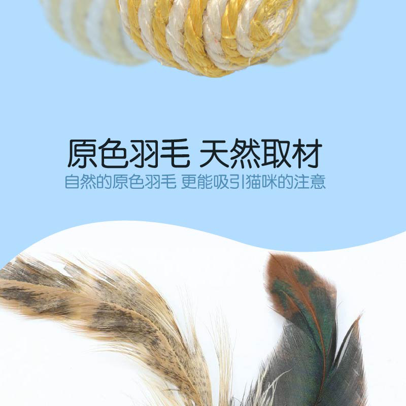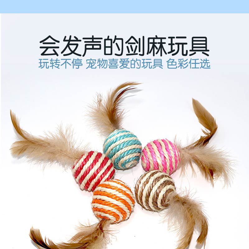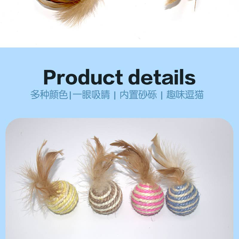 깃털이있는 고양이 장난감 사이잘삼 볼 고양이 물기 방지 어금니 부스러기 고양이 공 고양이 스크래치 볼 애완 동물 용품스토어 가기