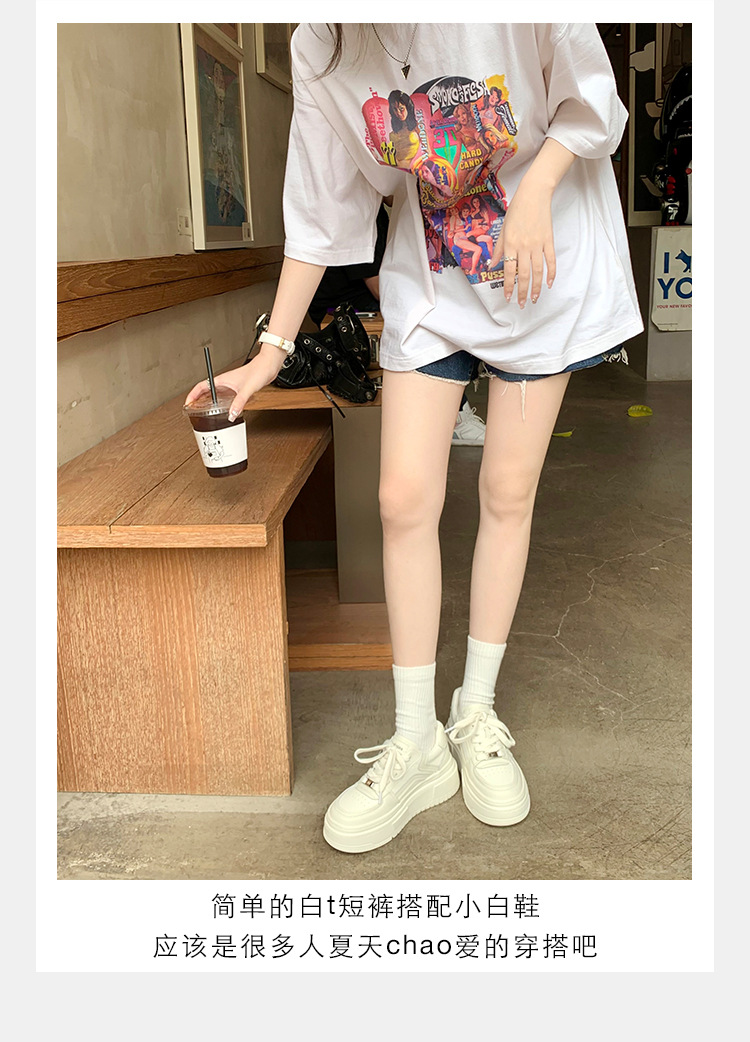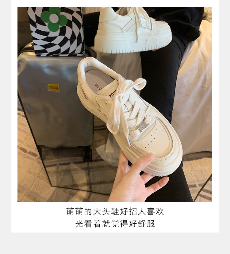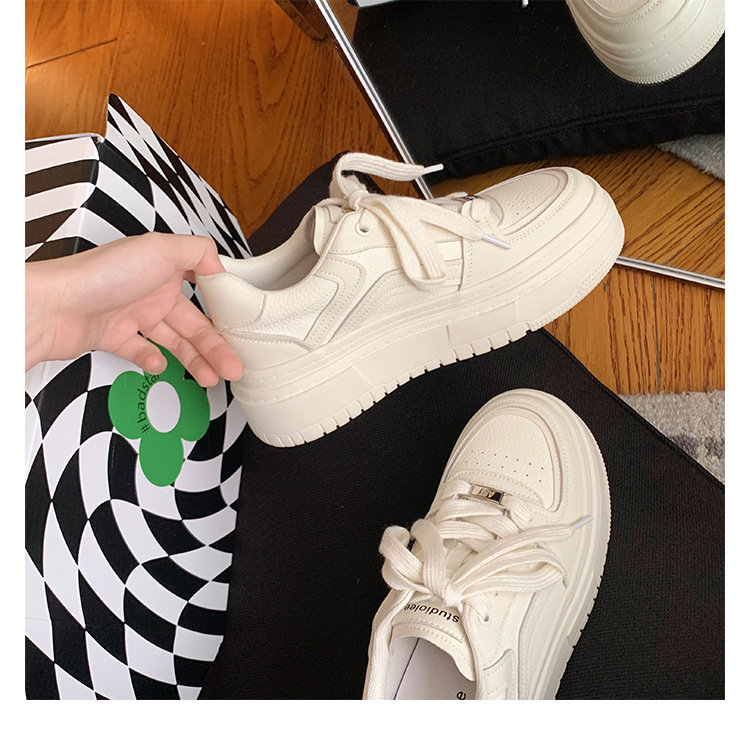 2025 봄 가을 신상 얇은 라운드 토 레이스업 화이트 슈즈 두꺼운 밑창 심플 로우탑 스포츠 캐주얼 스니커즈 여성용스토어 가기