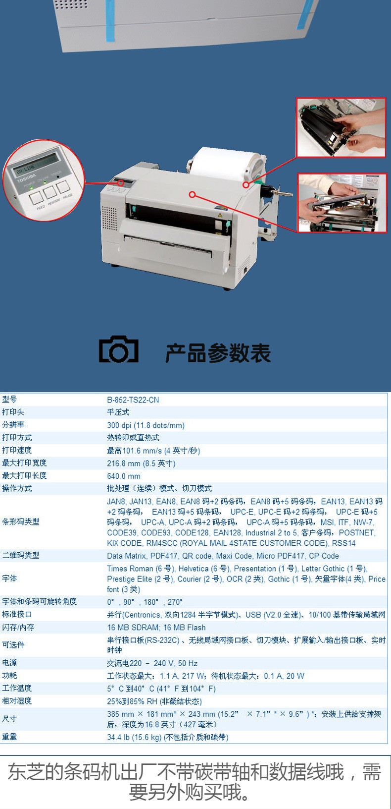 도시바 TEC B- 852 넓은 산업 바코드 라벨 프린터 A4 스티커 방수 라벨 프린터 화학 산업스토어 가기