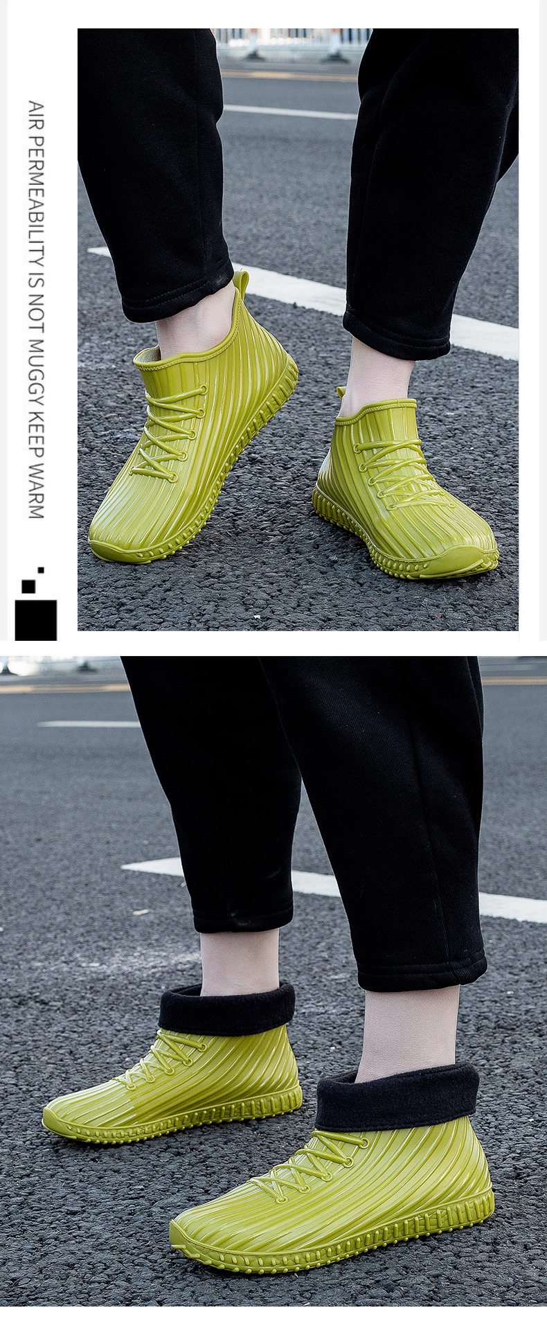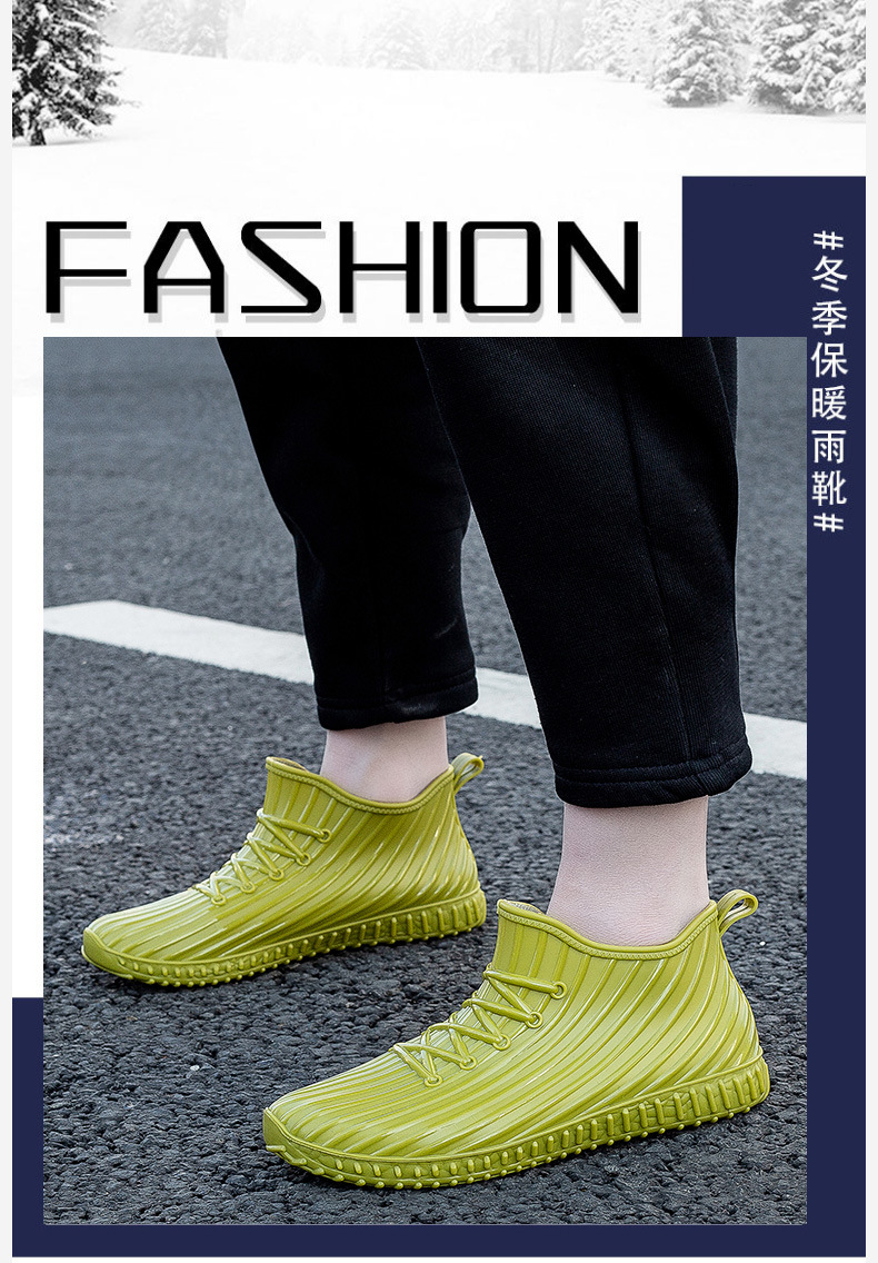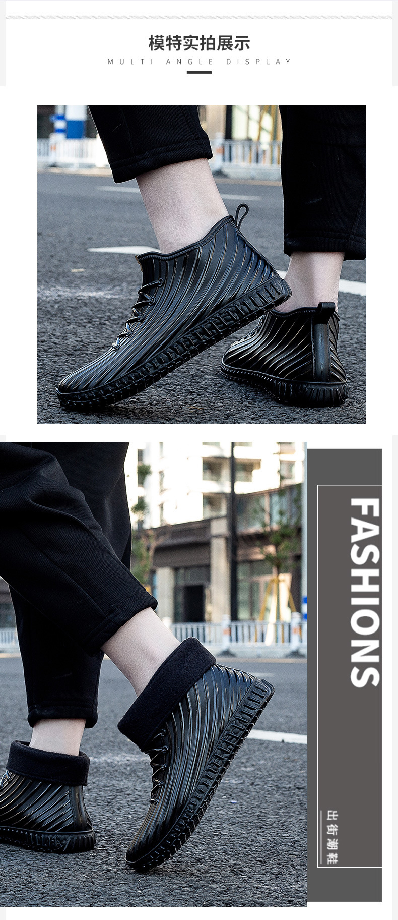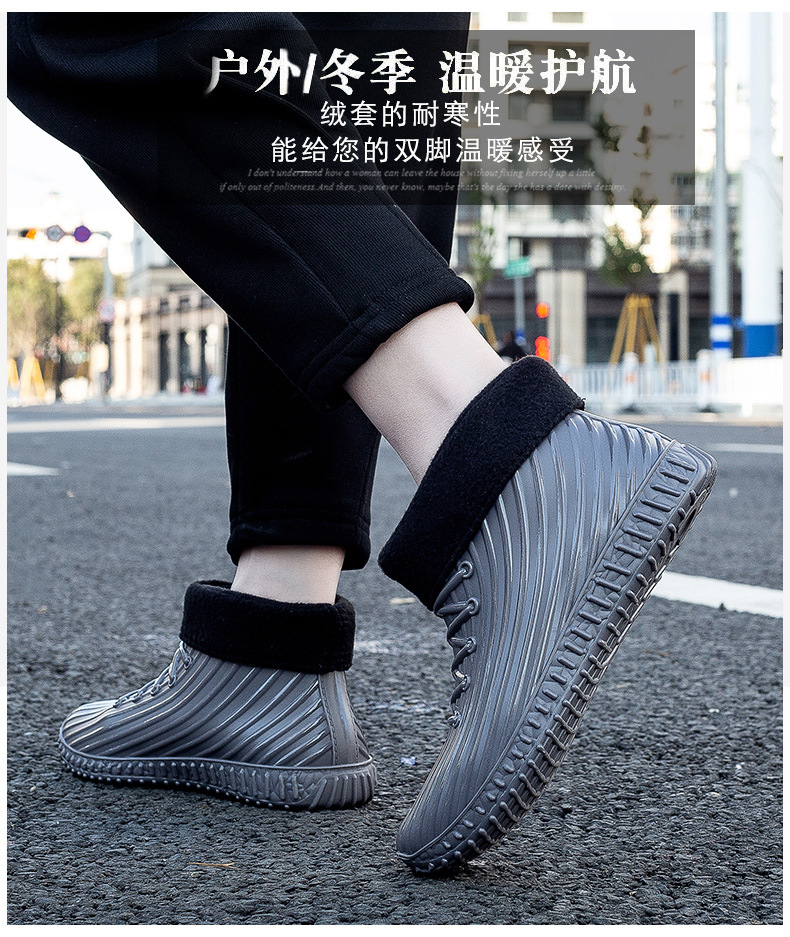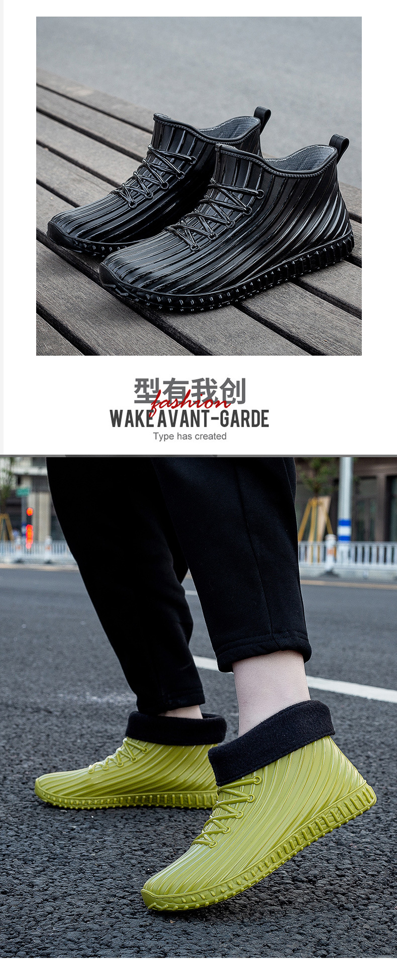 새로운 장화 남자의 십대 짧은 튜브 여자의 미끄럼 방지 패션 커플 플랫 기모 물 신발 학생 방수 장화