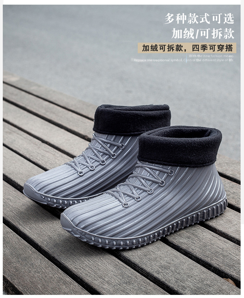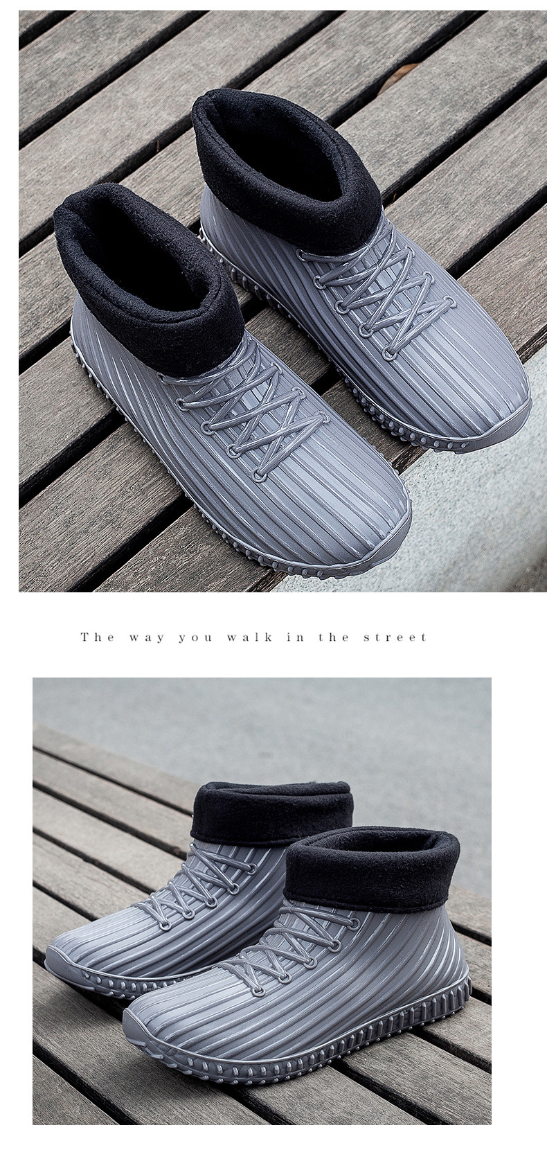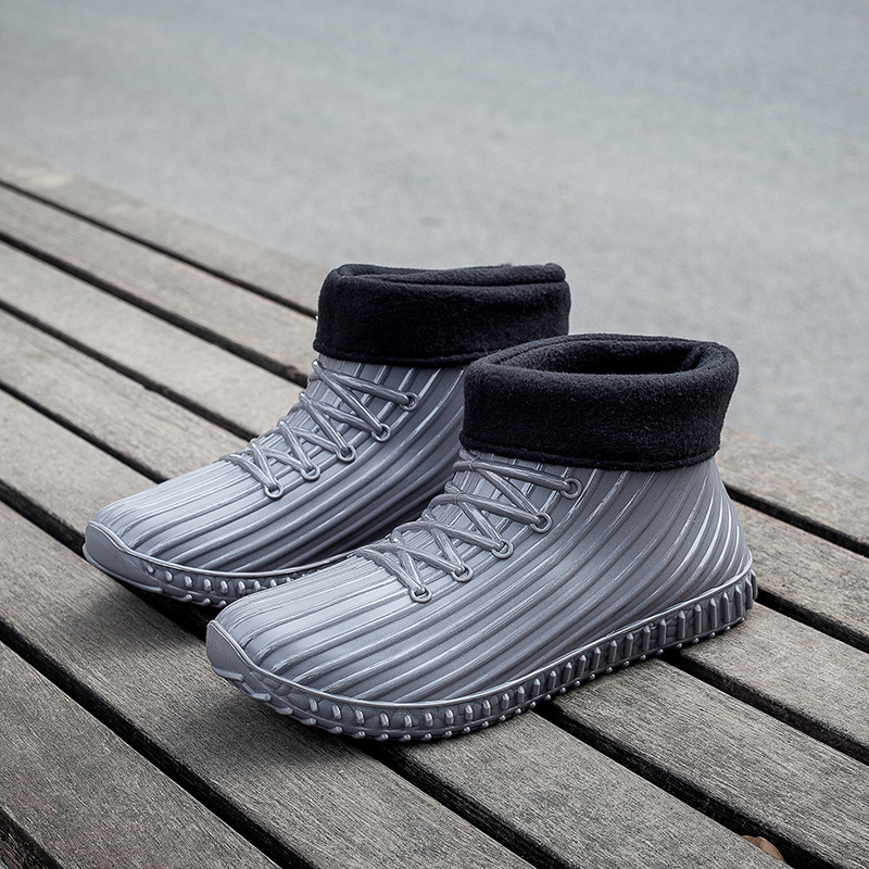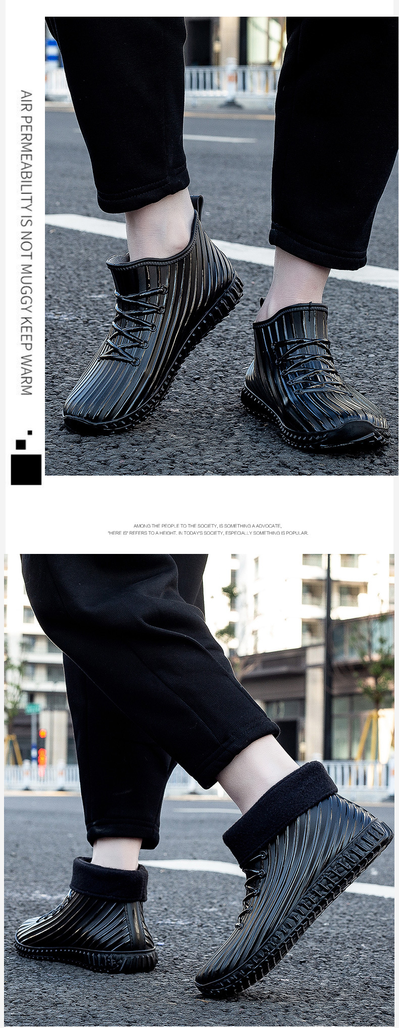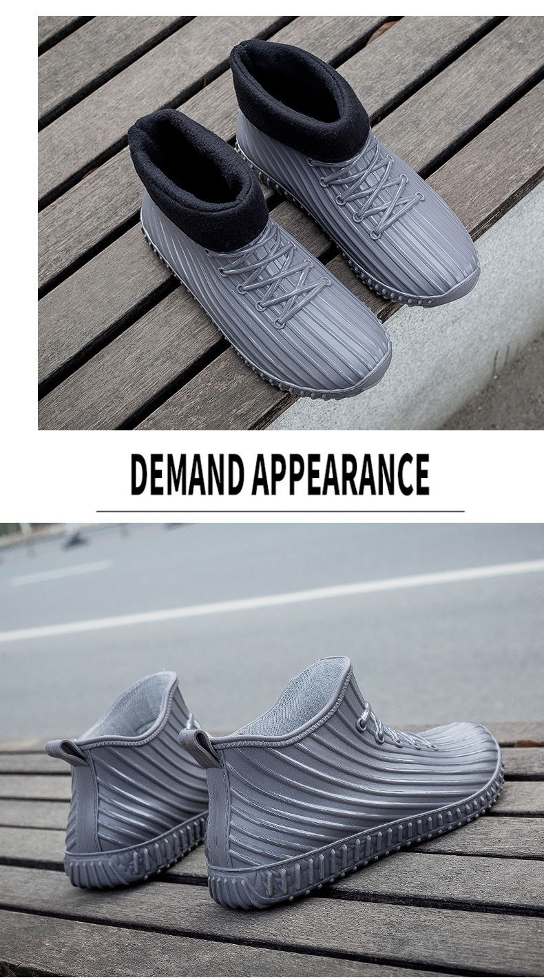 새로운 장화 남자의 십대 짧은 튜브 여자의 미끄럼 방지 패션 커플 플랫 기모 물 신발 학생 방수 장화