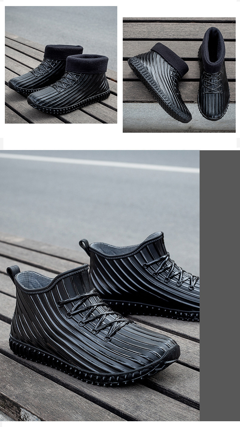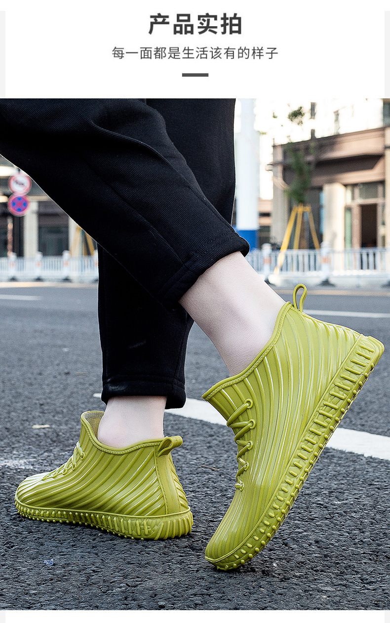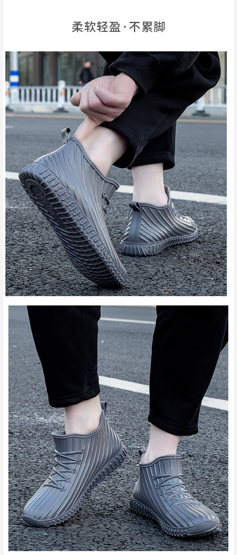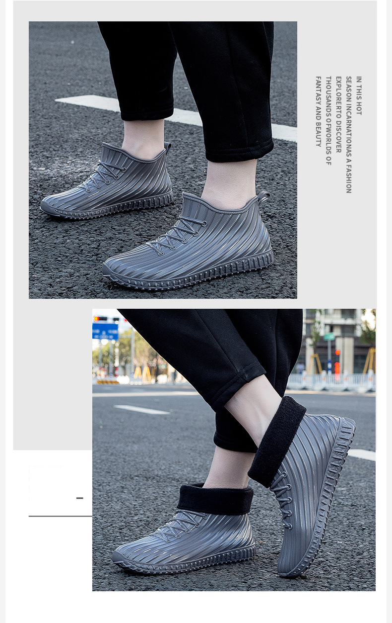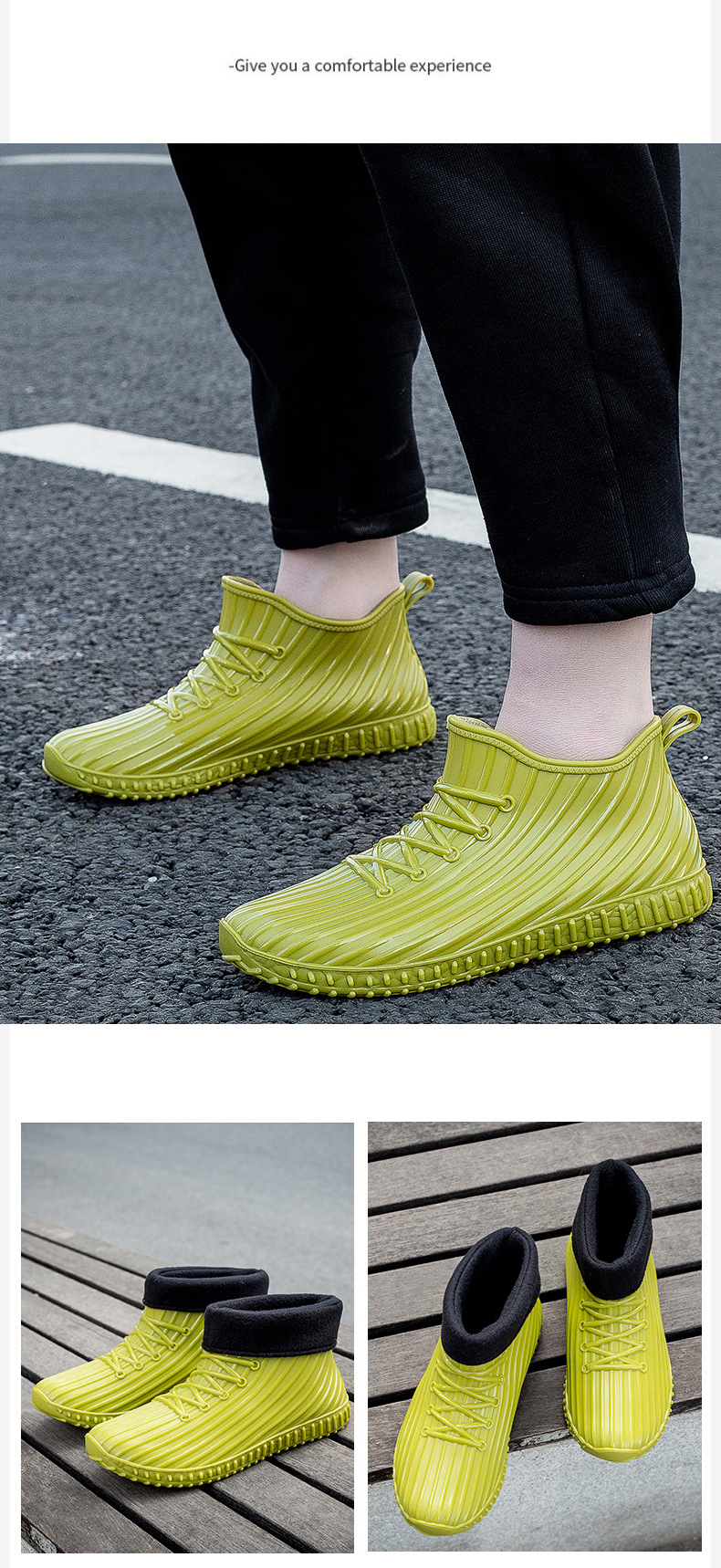 새로운 장화 남자의 십대 짧은 튜브 여자의 미끄럼 방지 패션 커플 플랫 기모 물 신발 학생 방수 장화