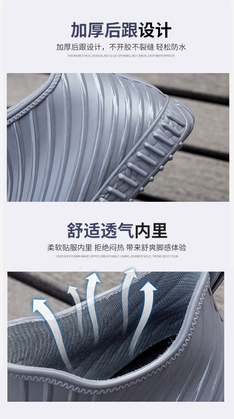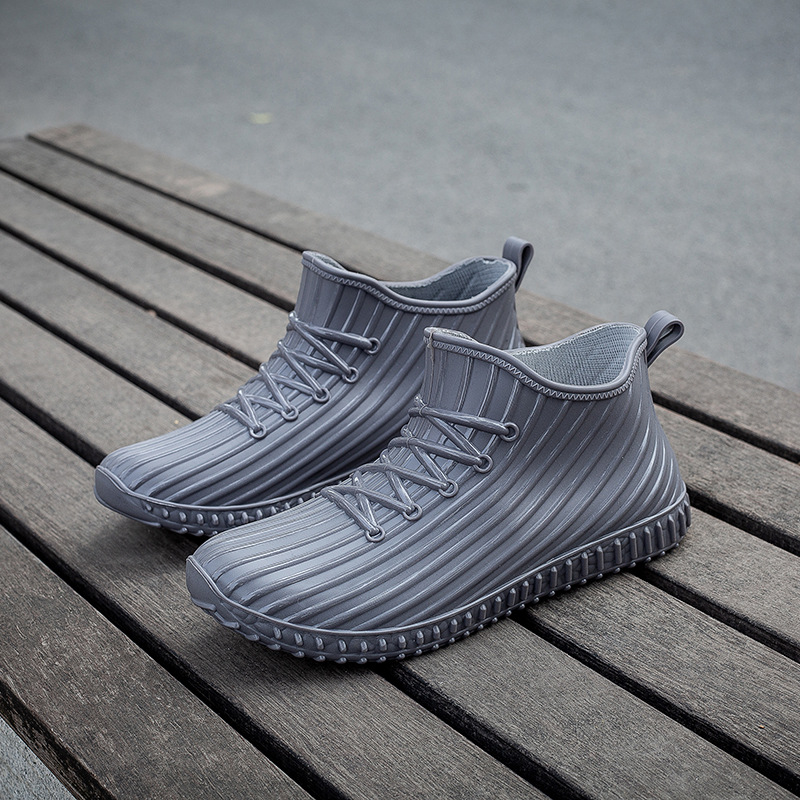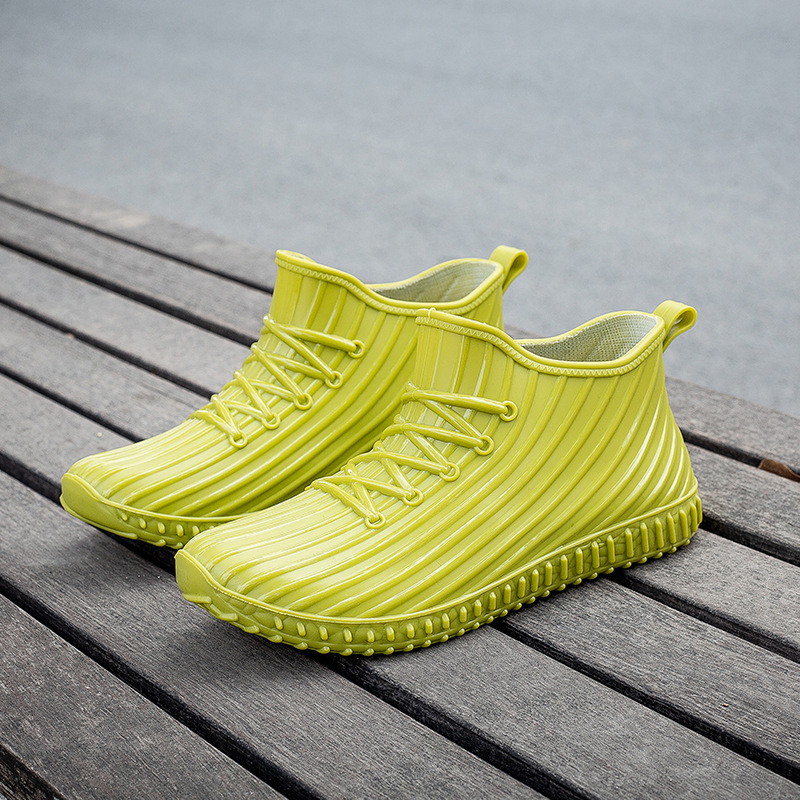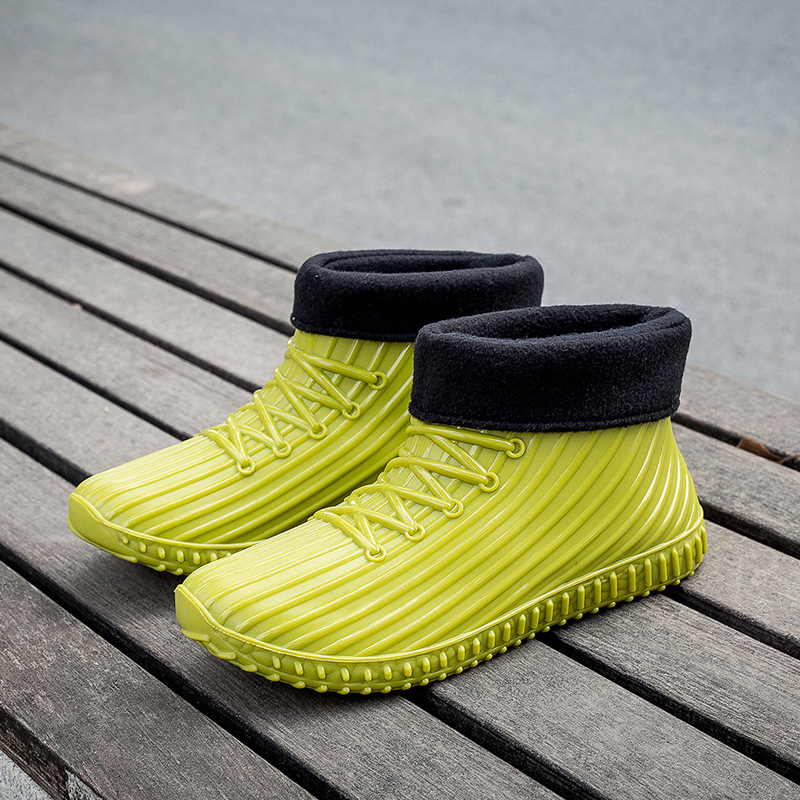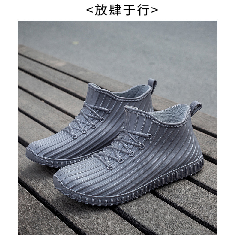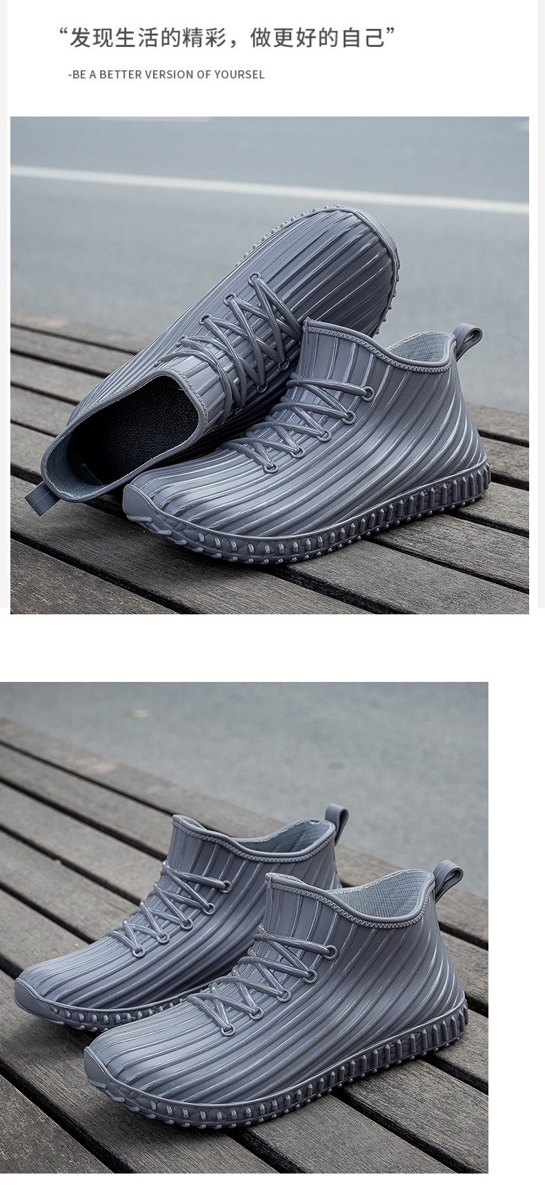 새로운 장화 남자의 십대 짧은 튜브 여자의 미끄럼 방지 패션 커플 플랫 기모 물 신발 학생 방수 장화