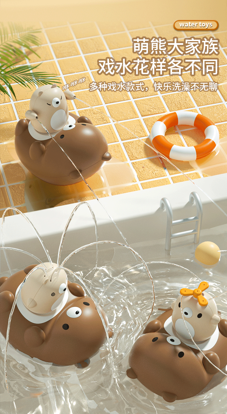 여름 인기 전기 물 장난감 곰 목욕 유물 벨루치 소년과 소녀 스프레이 꽃 와인 목욕 장난감스토어 가기