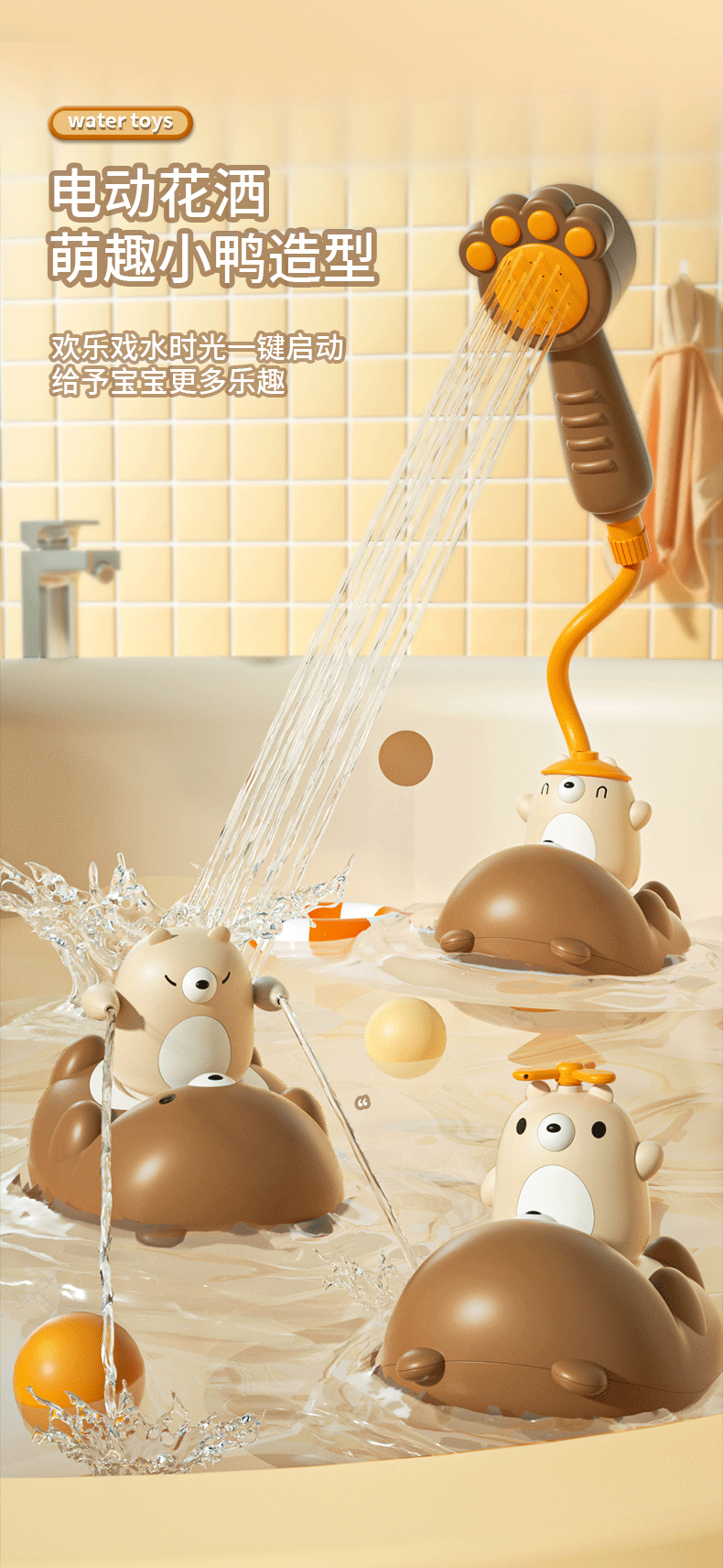 여름 인기 전기 물 장난감 곰 목욕 유물 벨루치 소년과 소녀 스프레이 꽃 와인 목욕 장난감