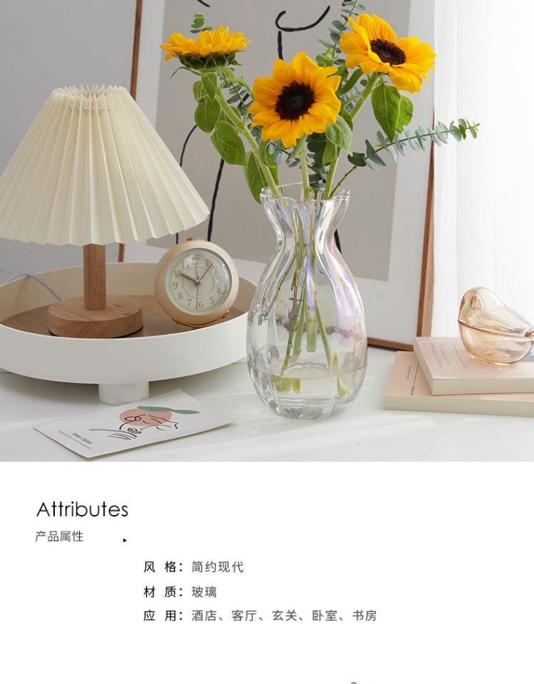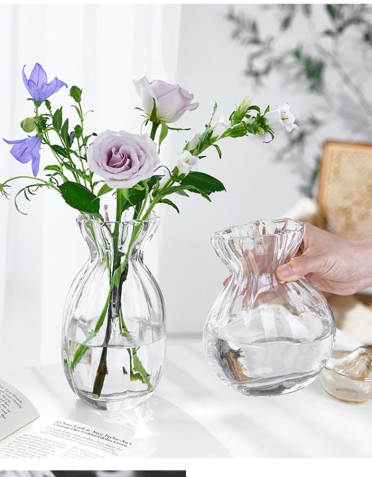 스타일 인터넷 연예인 유리 투명 꽃병 가정용 꽃 배열 장식품 거실 식탁 간단한 프랑스 스타일 방수 장식