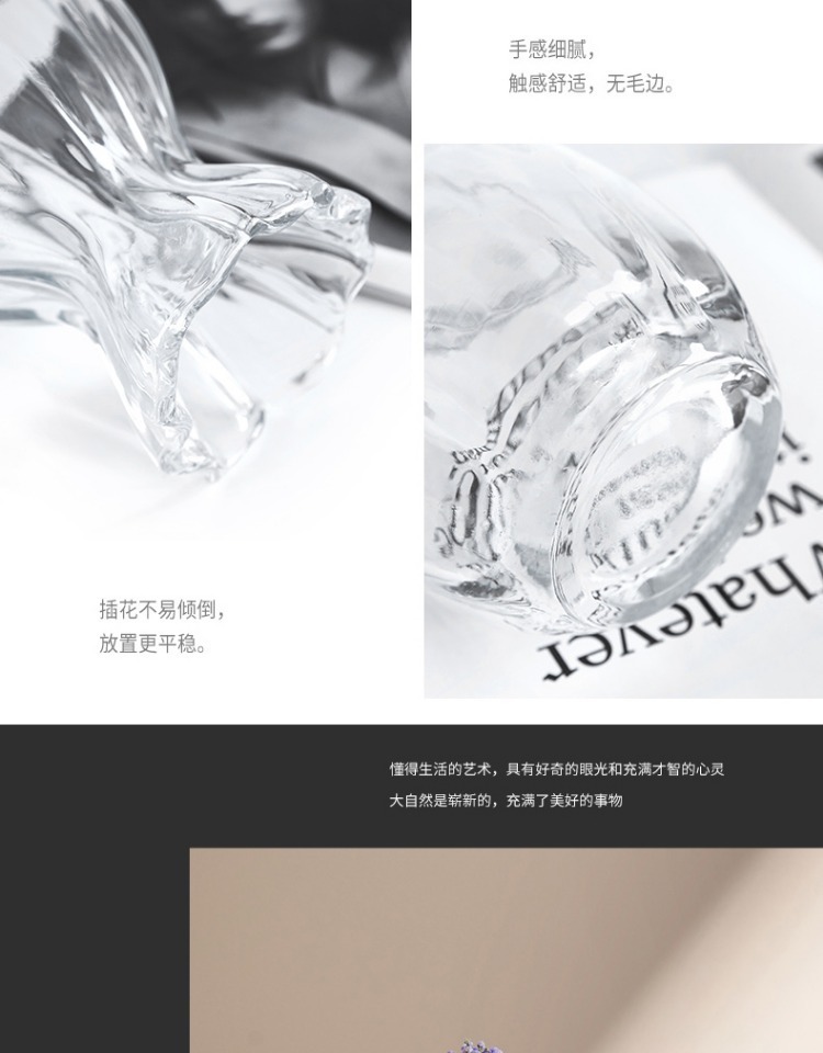 스타일 인터넷 연예인 유리 투명 꽃병 가정용 꽃 배열 장식품 거실 식탁 간단한 프랑스 스타일 방수 장식스토어 가기