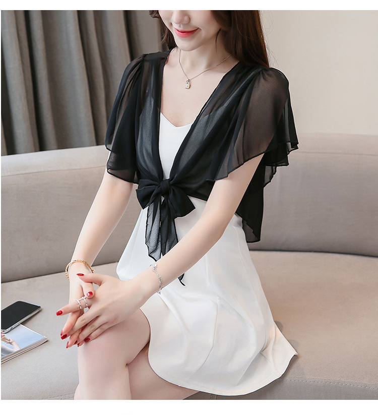 2026년 여름 신상 루즈핏 숏자켓, 스몰 숄 가디건, 얇은 쉬폰 배트 슬리브, 여성용 라지 사이즈 숄스토어 가기