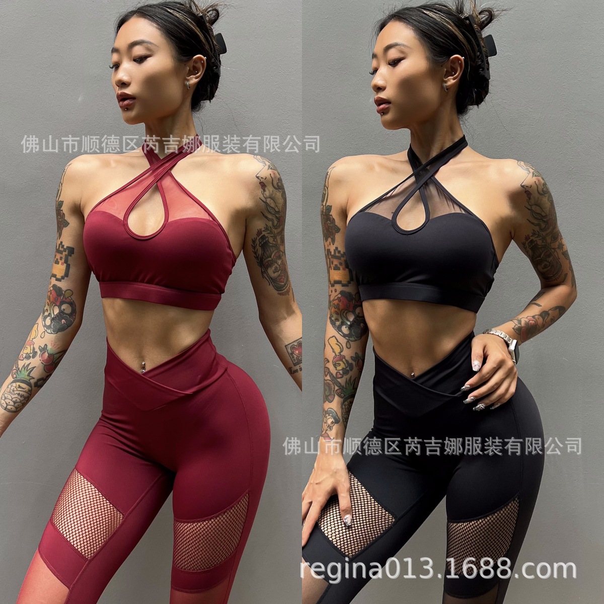 여성용 피트니스 요가 스포츠 브라, 메쉬 스티치, 홀터넥, 백리스, 신축성, 통기성, 무봉제, 타이트한 스포츠 스타일