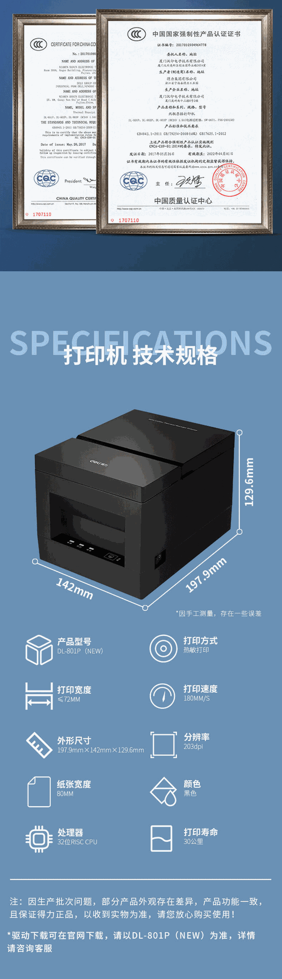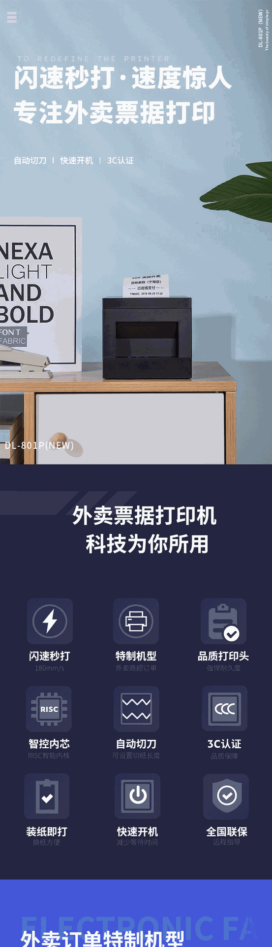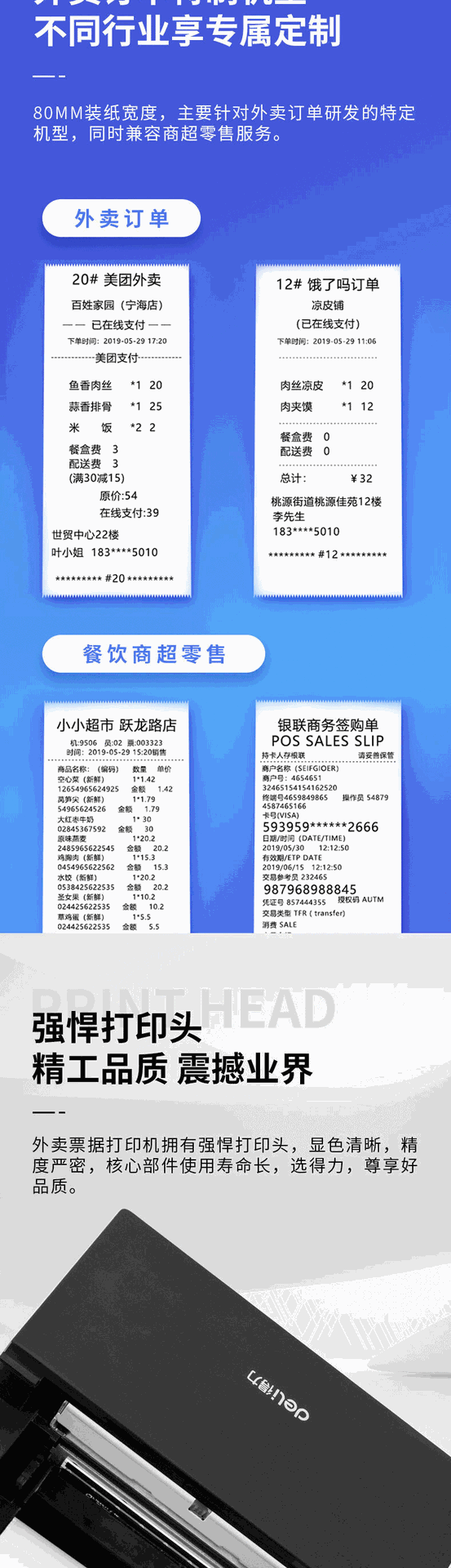 델리 DL-801P 테이크 아웃 단일 청구서 80mm 커터 영수증 상업용 Meituan 열 프린터스토어 가기