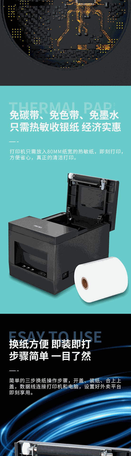 델리 DL-801P 테이크 아웃 단일 청구서 80mm 커터 영수증 상업용 Meituan 열 프린터